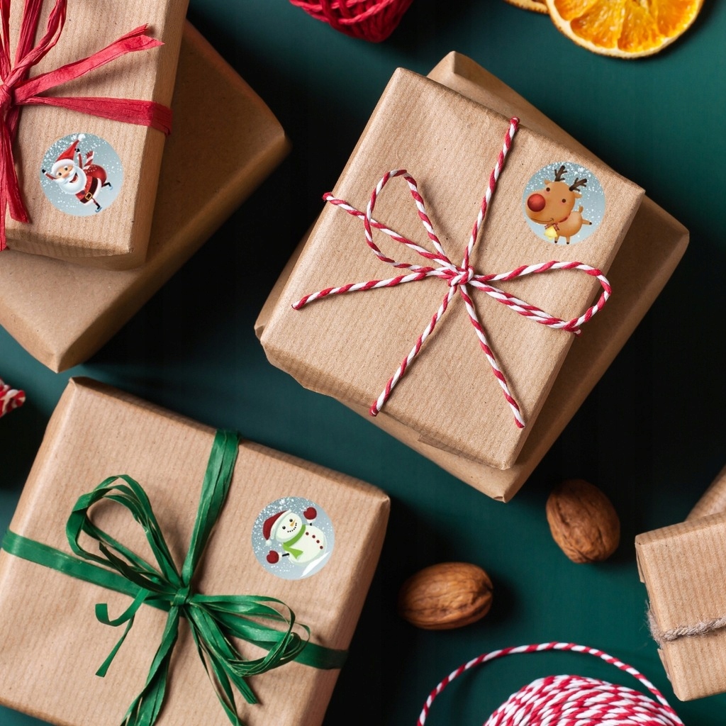 Круглі різдвяні наліпки в рулоні - це швидкий і ефектний спосіб прикраси подарунків, конвертів, посилок та різдвяних подарунків. Завдяки барвистим казковим ілюстраціям - зокрема: Санта-Клаус, олені, пінгвіни, сніговики чи новорічна ялинка - вони додають винятково теплого, зимового характеру кожному подарунку. Наклейки універсальні: їх можна використовувати вдома, в школі, в офісі, а також в магазинах і пунктах упаковки посилок.