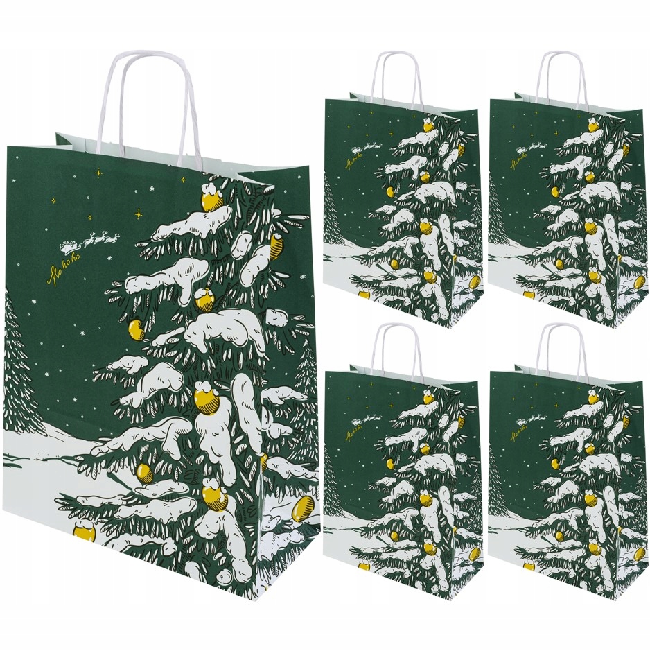 ❄️Декоративна пакети темно-зелених відтінків, з мотивом засніженої ялинки та золотих кульок, випромінюють тепло та елегантність - іідеально відображають дух Різдва.