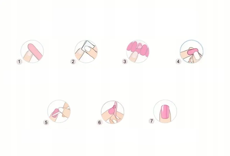 ✔️ Зайві наклейки на вільному краї нігтя підпиляйте пилочкою, рухаючись нею зверху вниз,