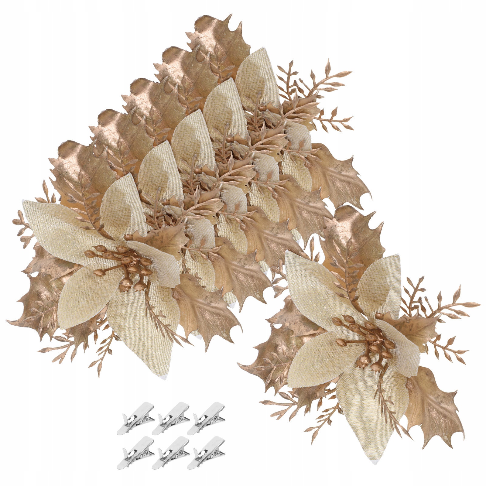 ✅Елегантні різдвяні квіткові композиції: різдвяні квіткові прикраси пуансетії, блискучі штучні квіти з різдвяними затискачами квіткові прикраси для квіткових композицій на різдвяну вечірку