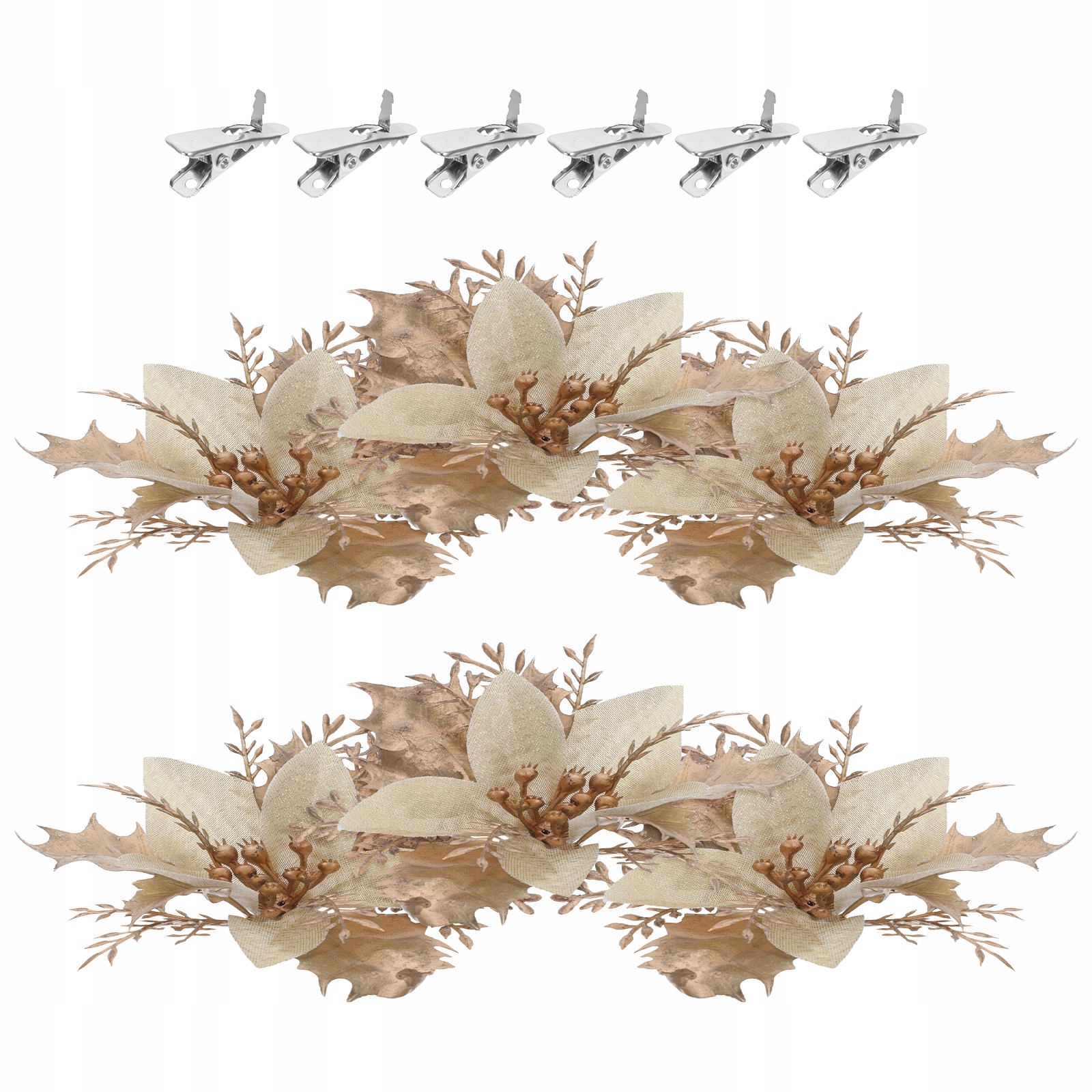 ✅Елегантні різдвяні квіткові композиції: різдвяні квіткові прикраси пуансеттії, блискучі штучні квіти з різдвяними кліпсами, квіткові прикраси для різдвяних вечірок квітковий