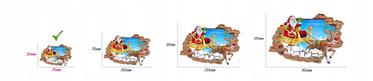 На всіх наших аукціонах у нас є новорічні наклейки наступних розмірів: 70x50 см, 100x70 см, 130x90 см, 160x110 см