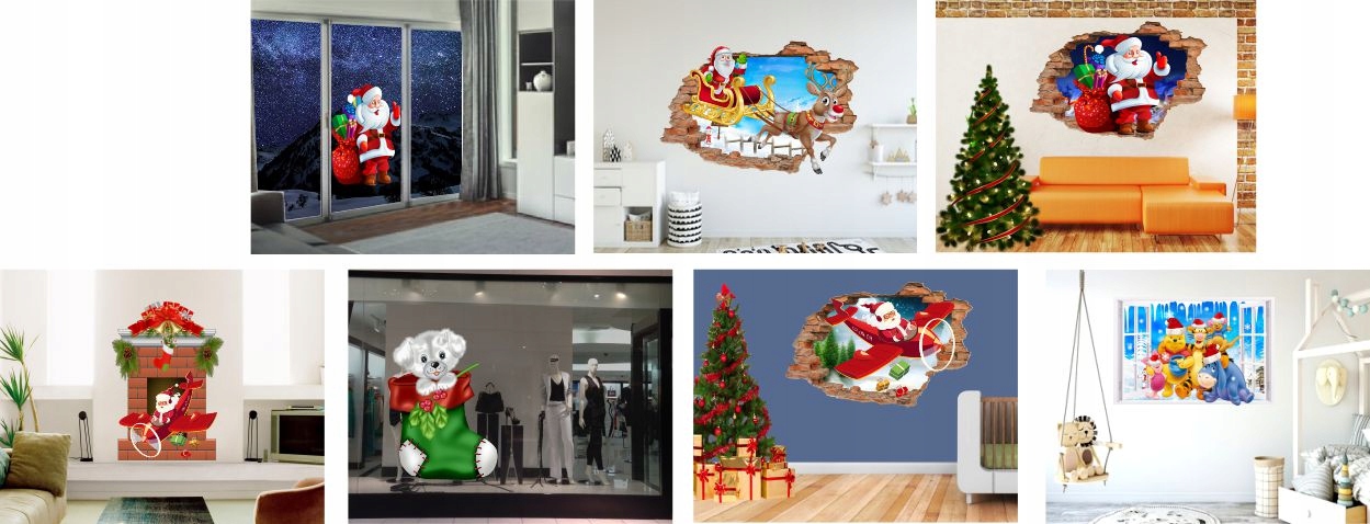 3D Різдвяні наклейки, Санта-Клаус, Вінні-Пух та друзі