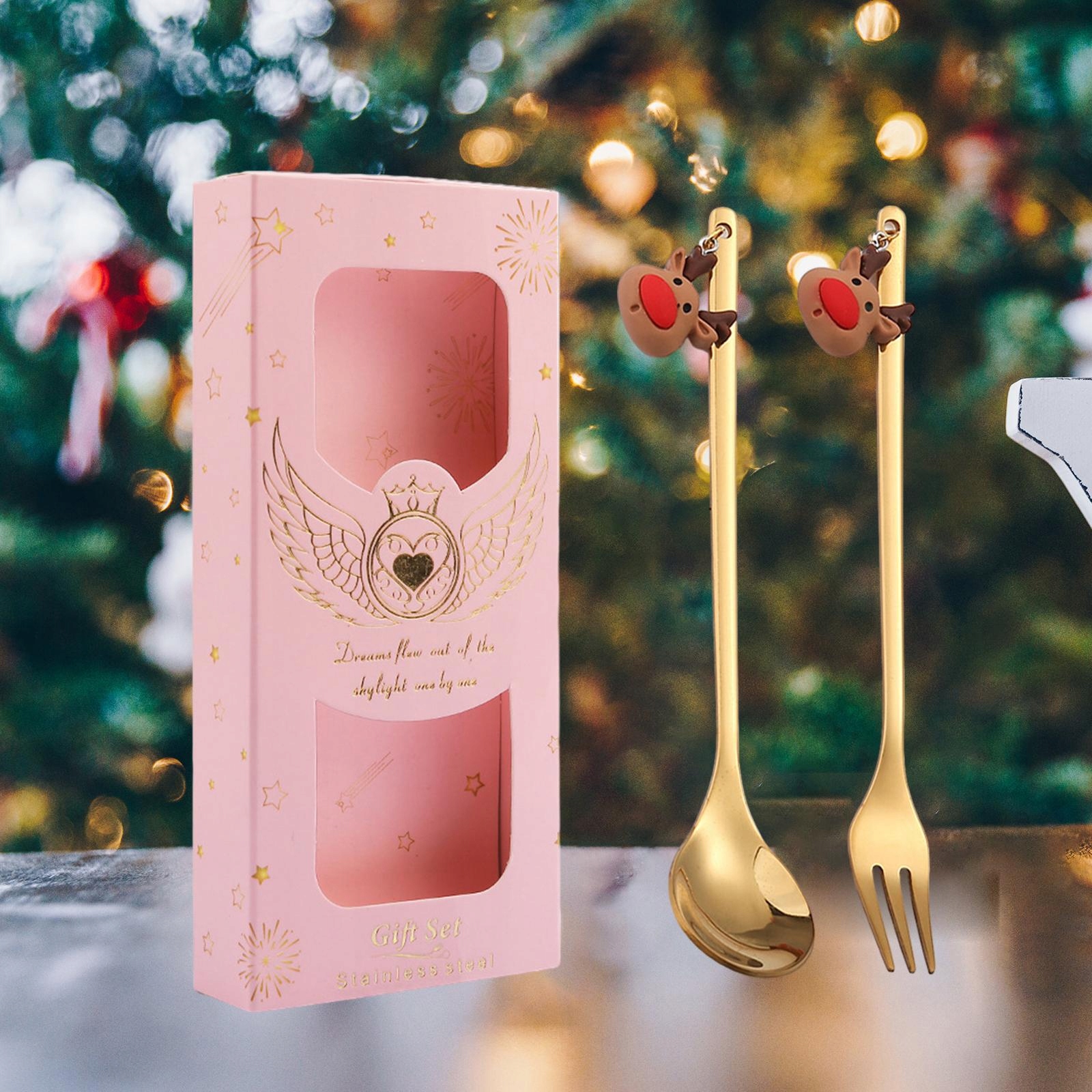 Різдвяні столові прилади з ложкою та виделкою в подарунковій коробці, ложка для змішування лосів