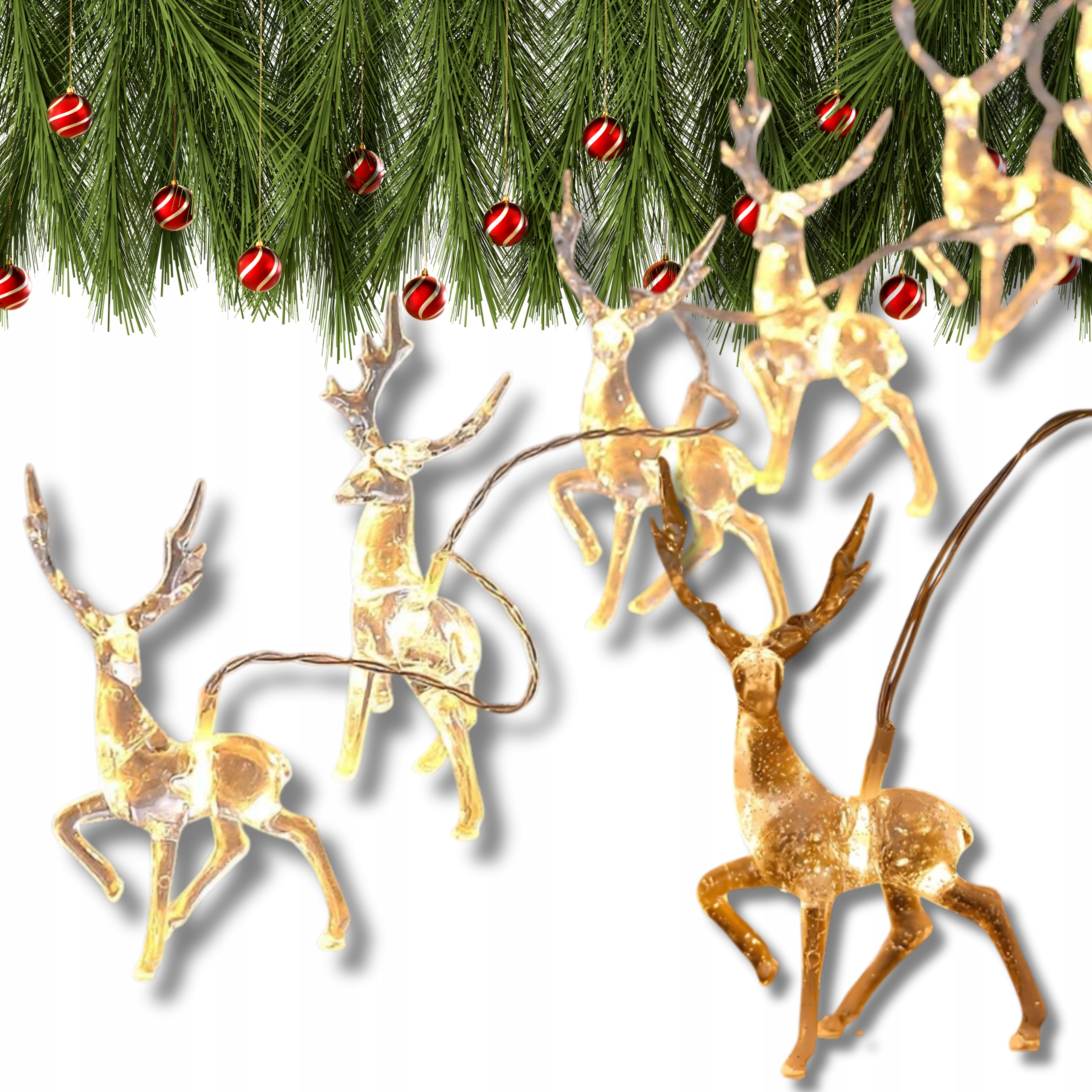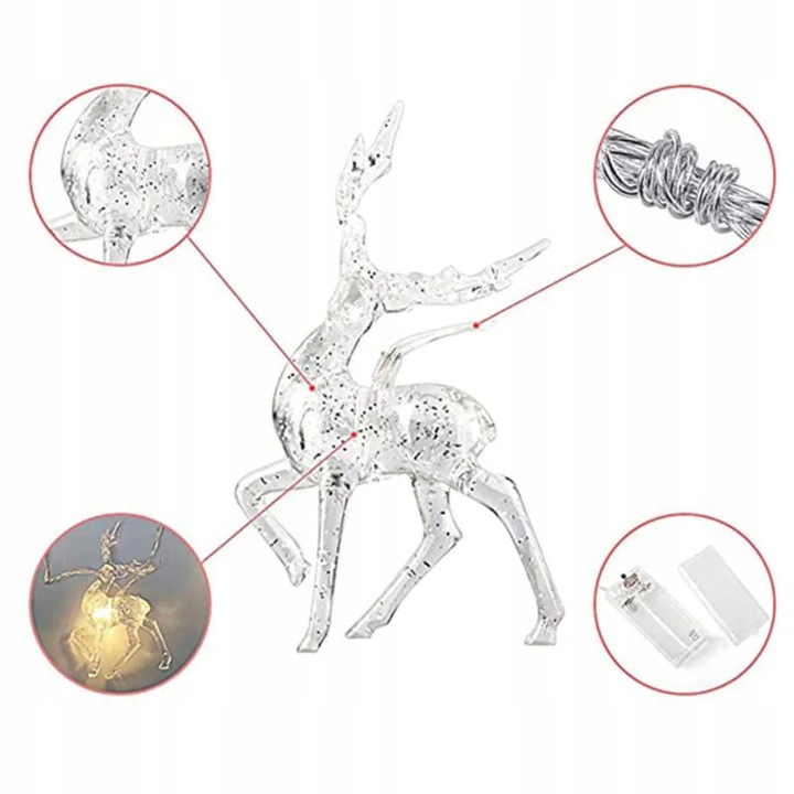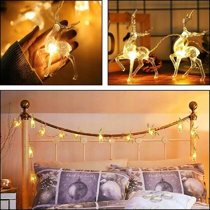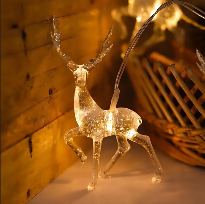 Створіть у своєму домі чарівну атмосферу за допомогою нашої світлодіодної гірлянди з ніжними прозорими оленями! Ідеально підходить для свят, а також як прикраса цілий рік.