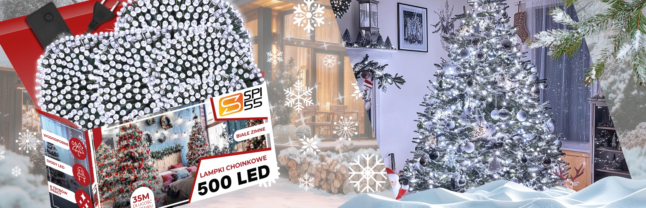 РІЗДВЯНІ СВІТЛІ 500 LED ХОЛОДНІ БІЛИ СВІТЛІ 35М 8 РЕЖИМІВ IP44