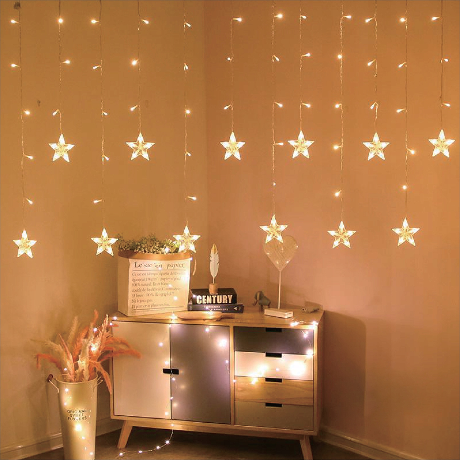 Мода останніх років показує, що якщо поєднати світло легкої штори з вуаллю, воно залишиться гарно розсіяним. Зірки також створять неповторну атмосферу, якщо їх світло стане дзеркальним відображенням у склі. Фантастичного ефекту також можна досягти, розмістивши їх як прикрасу стін, виставки предметів або певне місце.