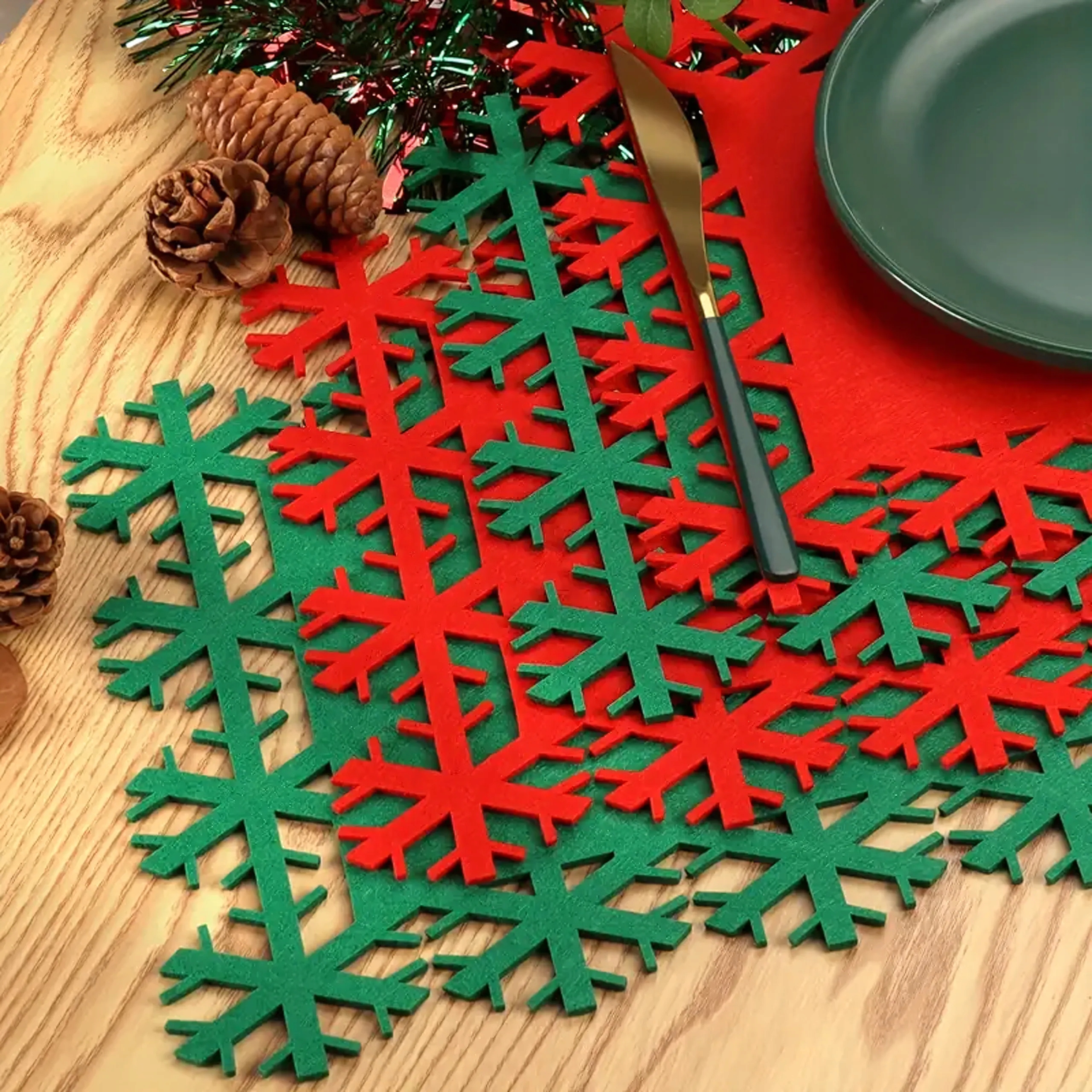 Хочете, щоб ваші святкові страви виглядали справді особливо? Елегантні фетрові серветки зі сніжинкою створять теплу чарівну атмосферу у ваш дім і підкреслять неповторність кожної зустрічі за столом. Вони поєднують функціональність із прикрасою - захищають стільницю та водночас додають різдвяний шарм, який порадує домочадців та гостей.