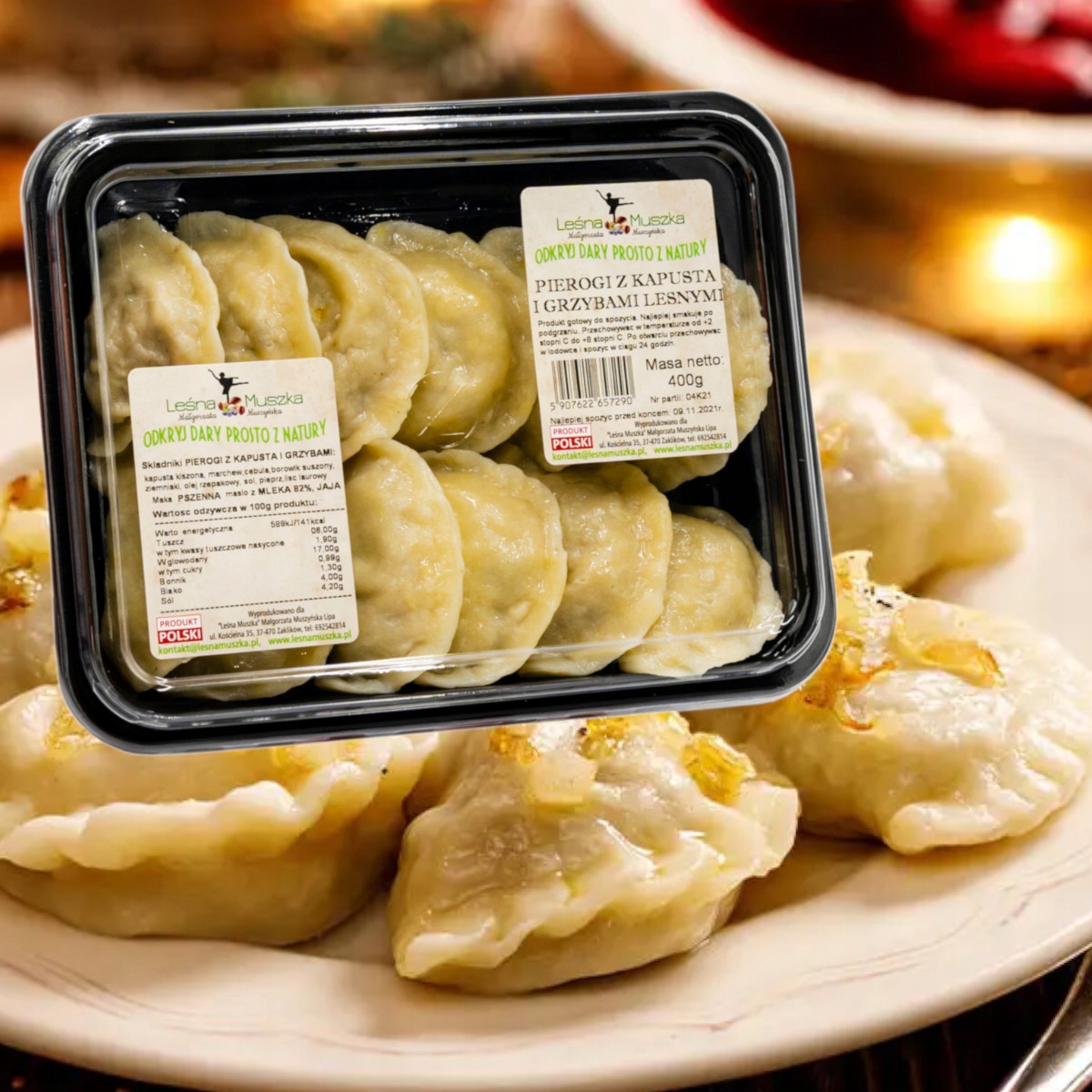 У холодні різдвяні вечори, коли вся родина збирається за спільним столом, символом стають наші вареники з капустою та лісовими грибами. домашнього тепла та близькості. Кожен вареник, зроблений з любов'ю і ретельно приготований, немов маленький скарб, захований у ніжному тісті. Їхня присутність на святвечірньому столі – це не лише данина польським кулінарним традиціям, а й можливість поділитися історіями, сміхом і спогадами, які передаються з покоління в покоління. Вони як міст, що з’єднує минуле з сьогоденням, дозволяючи на мить поміркувати та подякувати за моменти, які ми розділили. Нехай кожен шматочок цих вареників принесе вам не лише кулінарне задоволення, але й глибоке почуття причетності та тепла, які є суттю сімейного Різдва.