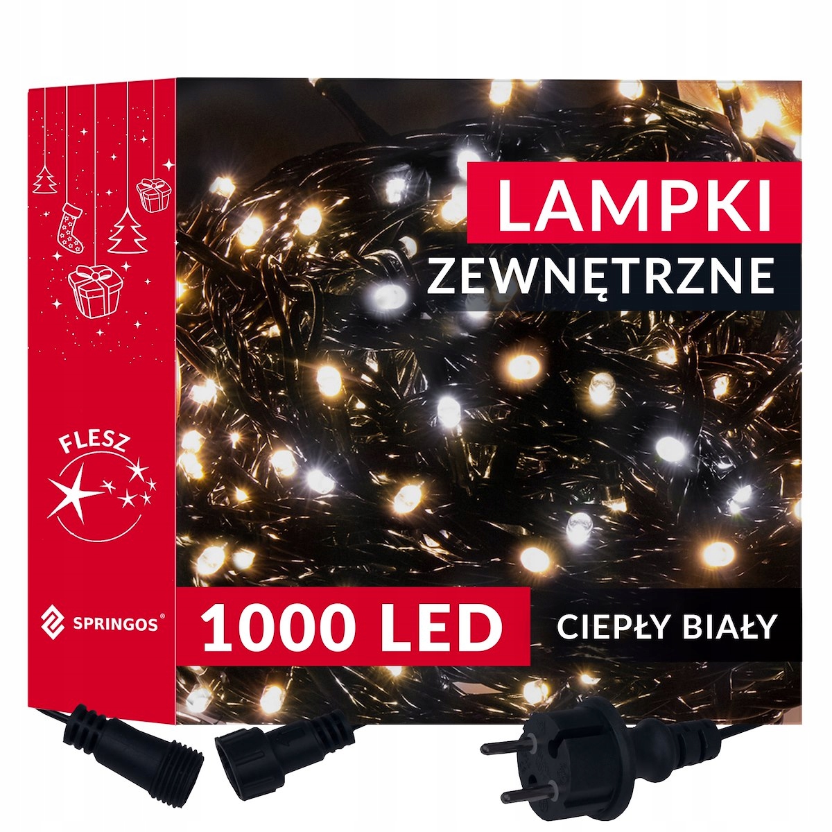 РІЗДВЯНІ ВОГНІ 1000 LED ЗОВНІШНЯ СВІТЛОВА ЗАВІСА IP44 WHITE FLASH