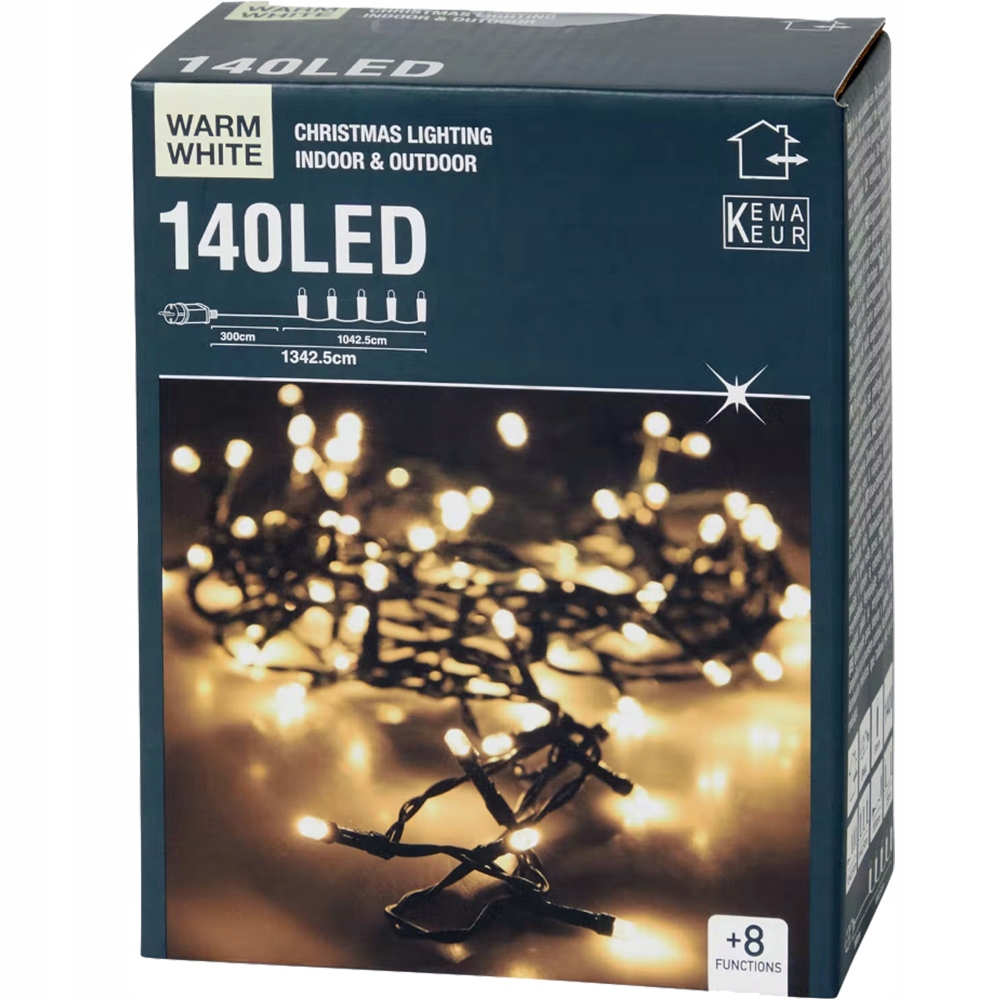 ТЕПЛО-БІЛІ РІЗДВЯНІ СВІТЛІ 8 ФУНКЦІЙ 140 LED 13 м