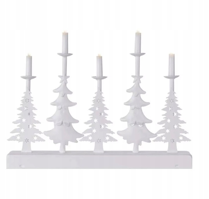 Новорічна прикраса у вигляді свічника у вигляді чарівних світлодіодних ялинок від відомої компанії EMOS . Білий колір виробу дозволяє легко вписати його в будь-яке приміщення. Підсвічник світиться теплим білим світлом, завдяки чому у вашому інтер'єрі буде панувати затишна атмосфера. Представлена білаялинкова прикрасаживиться від двох батарей типу АА (не входять в комплект) і призначена тільки для використання всередині приміщень, а її ступінь стійкості становить IP20. Приблизний термін придатності продукту становить приблизно 10 0000 годин. Підсвічник оснащений 5світлодіодами.