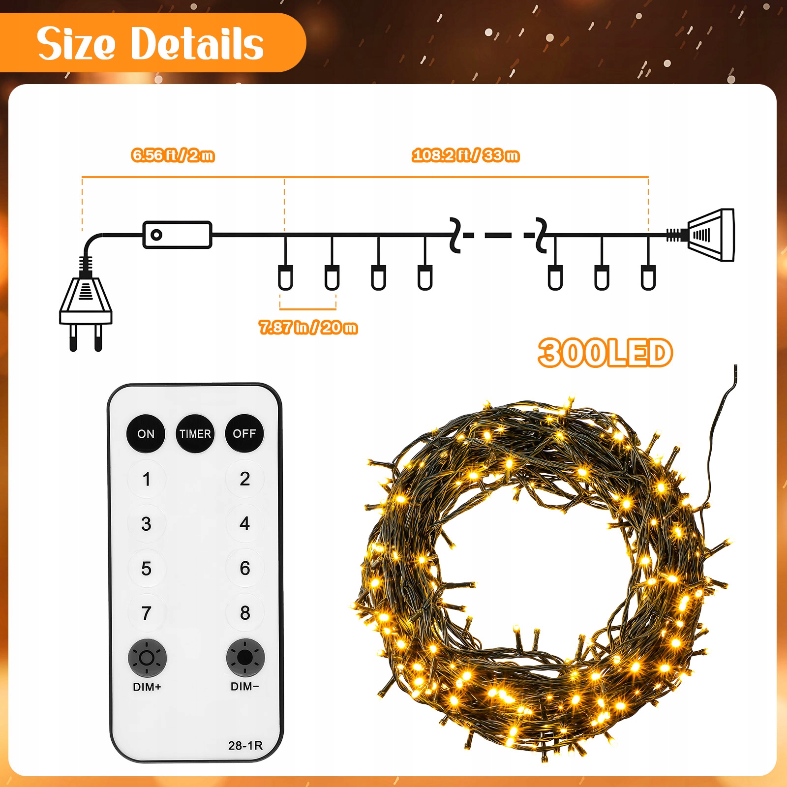 ⭐ Ялинкові вогні 300 світлодіодів — це продукт, який, безсумнівно, змусить вас відчути магію Різдва!