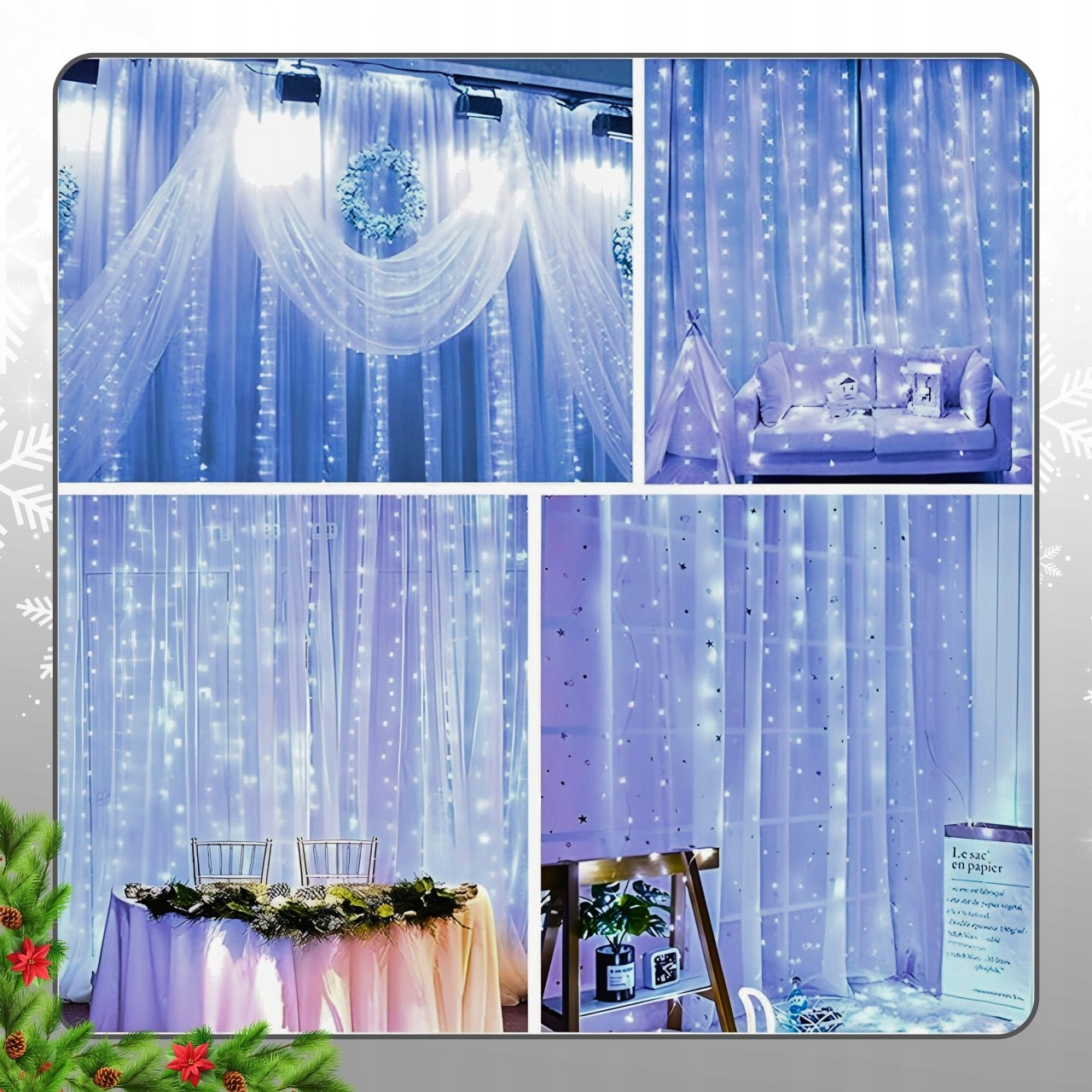 - Створіть у своєму домі чарівну атмосферу за допомогою унікальної світлодіодної світлової завіси, яка освітить будь-який внутрішній та зовнішній простір. Цей набір містить 300 світлодіодів холодного, холодного кольору, які створять привабливу прикрасу на вікні, балконі, вітрині тощо. Ідеально підходить для різдвяних композицій, набір повністю готовий до складання та використання, тому ви можете легко додати блиску своєму оточенню.