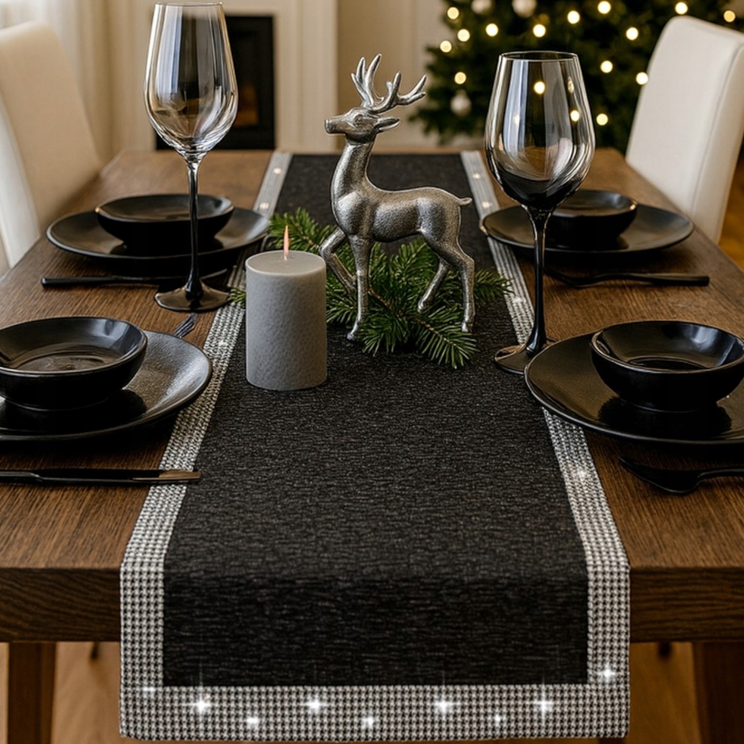 РІЗДВЯНА доріжка GLAMOUR BLACK SILVER стрази Christmas 40X220