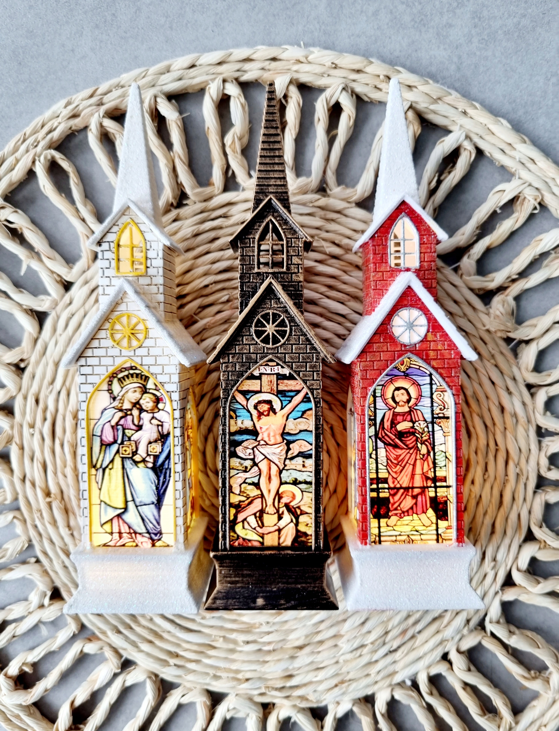Різдвяна церковна статуетка зосвітленням усередині, дуже ретельно пофарбована, щоб підкреслити всі деталі.