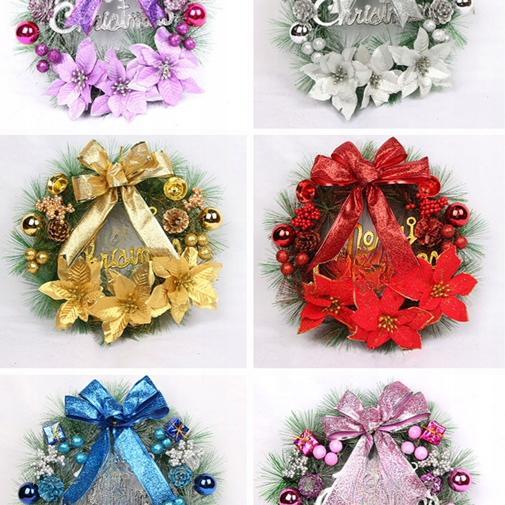 ✅Особливості різдвяного вінка з різнокольоровою сосновою шишкою, ягодою, маленькою кулькою, бантом і імітацією квіткового декору, модний і підходить для внутрішнього чи зовнішнього використання