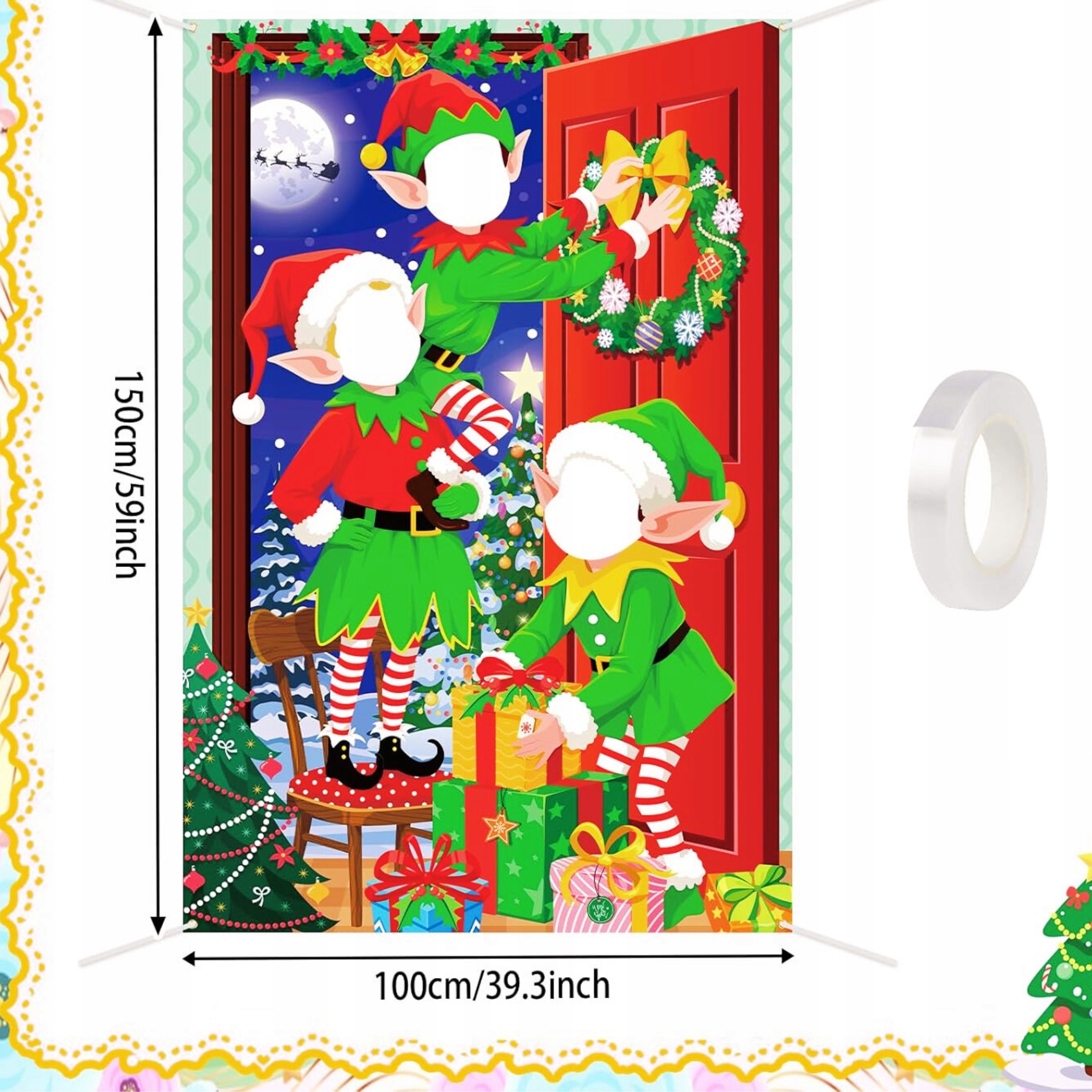✔️ На стіні є 3 отвори, вирізані для облич, тому до трьох дітей загалом можуть перетворитися на різдвяних персонажів, Ельфи Діда Мороза, маленькі помічники.