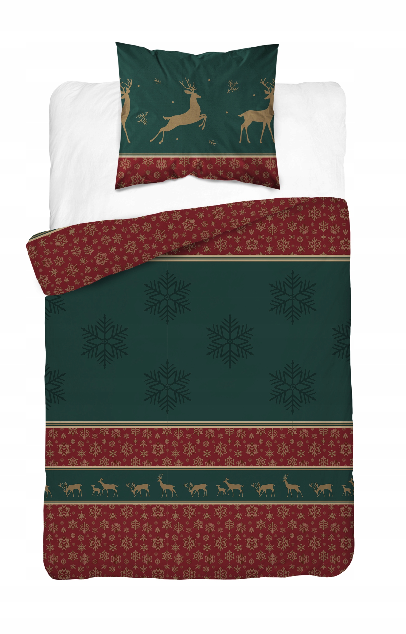 РІЗДВЯНИЙ КОМПЛЕКТ ПОСТІЛЬНОЇ БІЛИЗНИ 140х200 ОЛЕНІ СНІЖИНКИ РІЗДВЯНА ПОСТІЛЬНА БІЛИЗНА