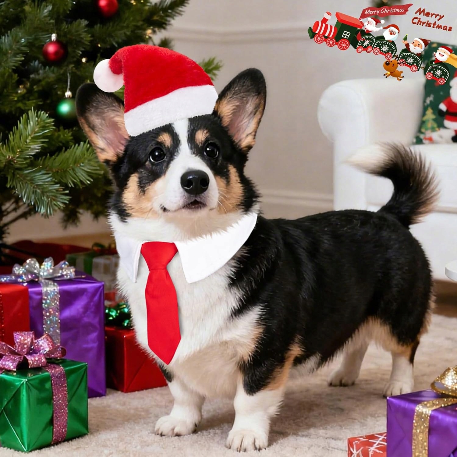 Набір із двох частин складається з червоного різдвяного капелюха та відповідної краватки, завдяки яким ваша собака чи кішка одразу виглядатиме як зірка різдвяної вечірки 🎅✨. Це ідеальний аксесуар для Різдва, сімейних зустрічей та фотографій на пам'ять із чотирилапим 📸💖.