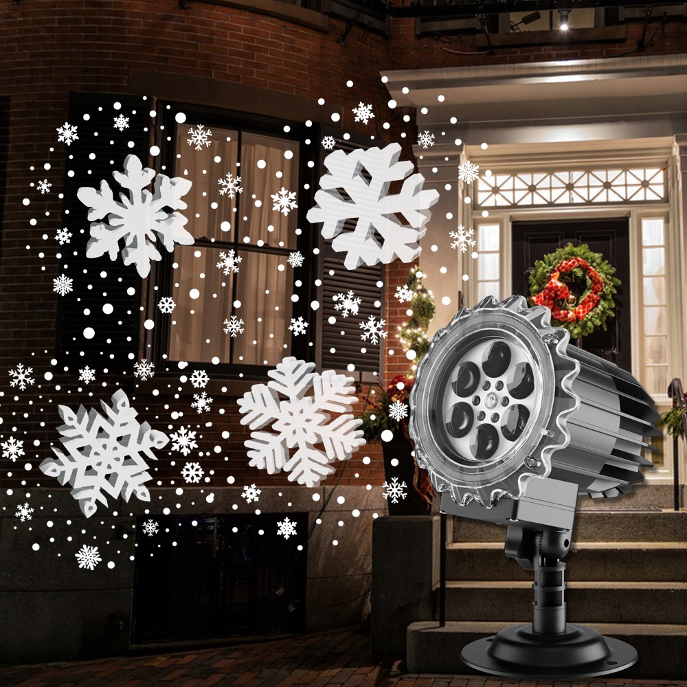 Водонепроникний корпус IP45 і високоякісний фольгований чіп роблять його придатним для використання всередині і на вулиці. Стійкий до погодних умов від -20°C до 40°C, проектор сніжинок працює навіть у дощові та сніжні дні. Оснащений вбудованим вентилятором, проектор сніжинок працює навіть у жарку погоду, тому ви можете використовувати його на вулиці під час різдвяного сезону.
