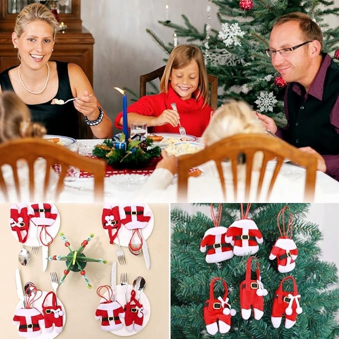 - Щоб зробити вашу різдвяну вечірку особливою, ми пропонуємо різдвяні футляри для столових приборів. Прикрасьте свою різдвяну вечерю класичним костюмом Діда Мороза.