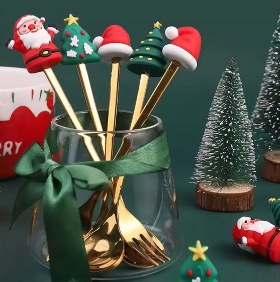 Різдвяний набір ложок і виделок виготовлено з високоякісної харчової нержавіючої сталі, яка не токсична, стійка до іржі, стійкий до корозії, термостійкий, міцний і може використовуватися протягом тривалого часу.