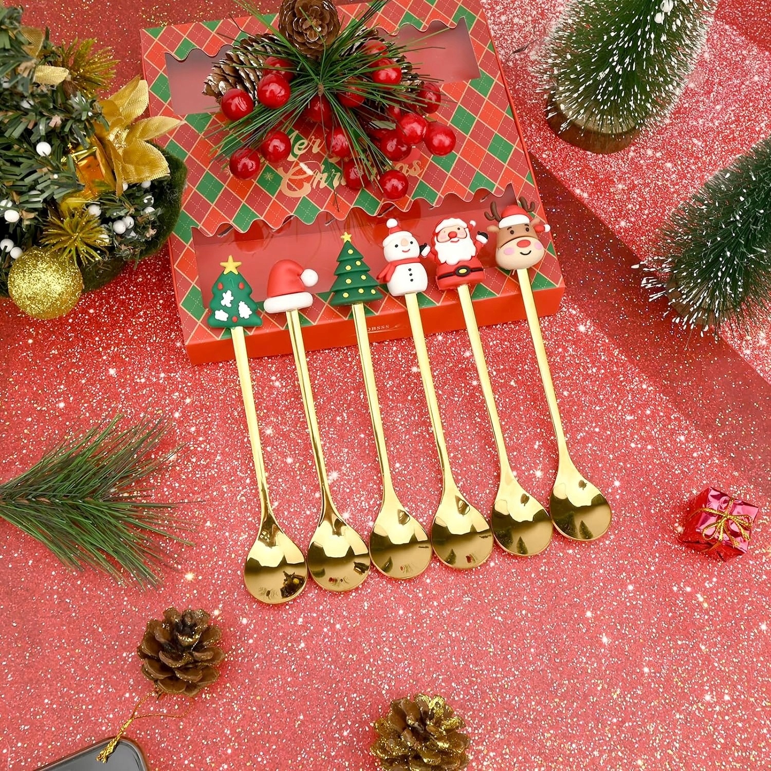 ✨Унікальний і милий різдвяний дизайн - ляльки Санта-Клауса на кожній ложці та виделці. Підходить для гарячих і холодних напоїв, додаючи гарних кольорів вашій кімнаті.