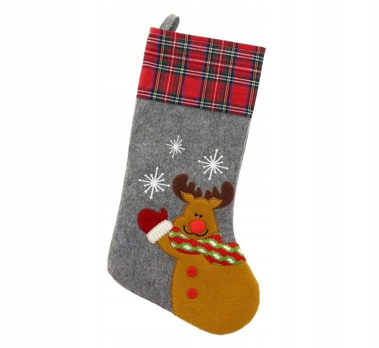 Новорічна панчоха для подарунків ОЛЕНЬ фетр Розміри: Загальна довжина носка 51см. Ширина носка 23,5 см. Виготовлена з матеріалу, що імітує фетр. Темно-сірий декор. Прикрашений оленями та білими сніжками. Ідеально підходить як доповнення до подарунка або різдвяної прикраси. Крім того, він має практичну петлю для підвішування.