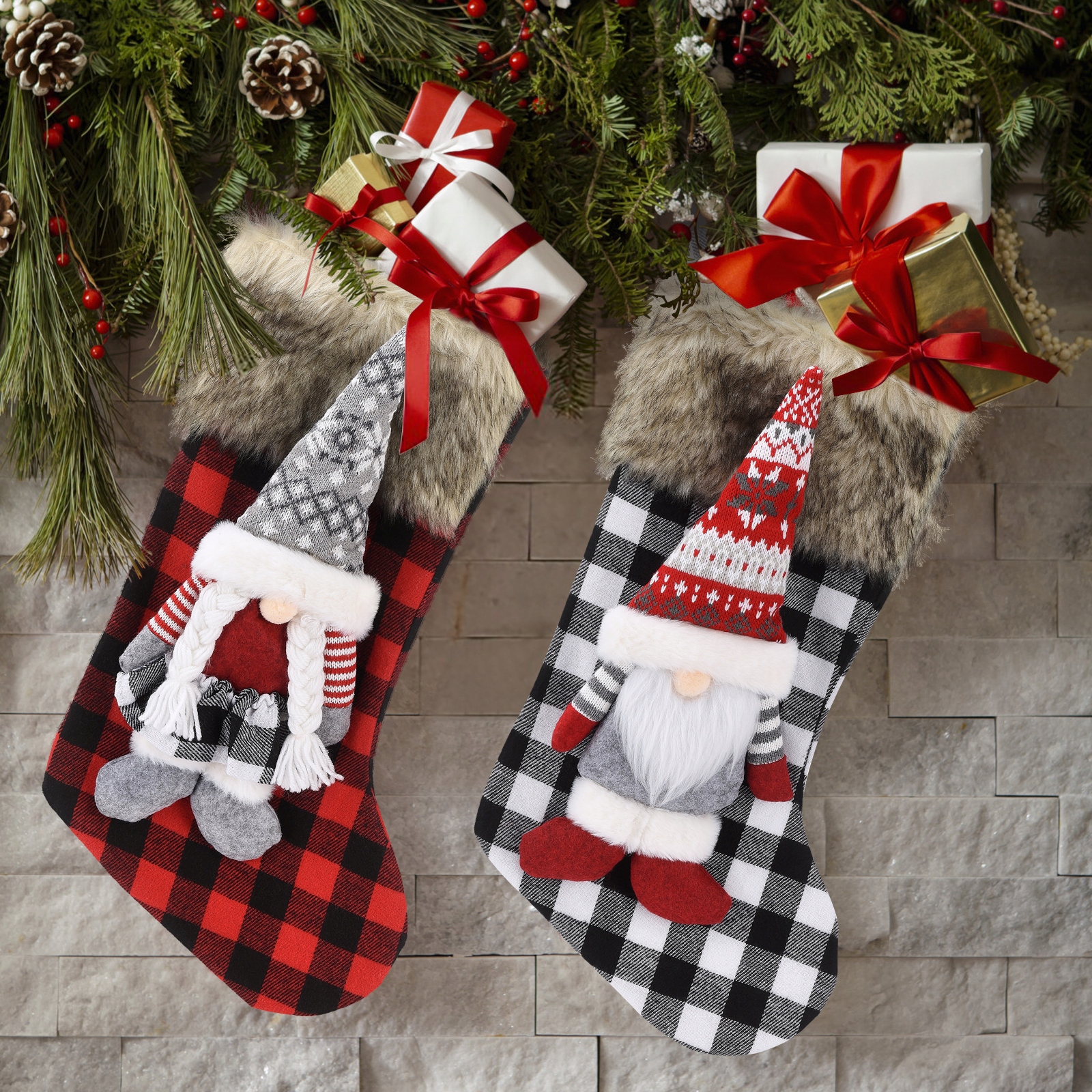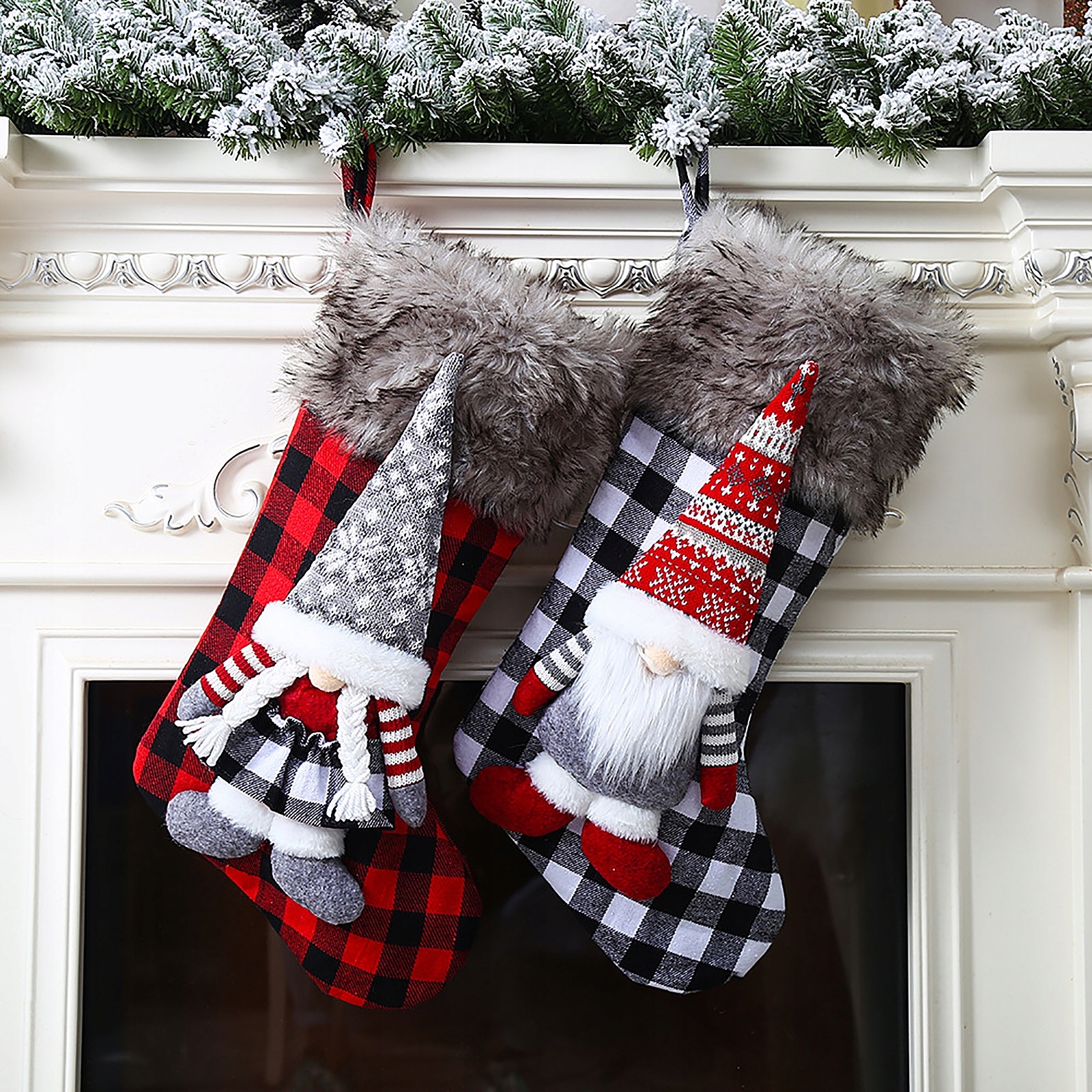 2. Класичний стиль: лялька гном із високим капелюхом, прикрашена панчохою, оснащена короткими плюшевими та класичними візерунками в клітку, ідеальна прикраса для Різдва, Нового року вдома, ресторані, клубі, барі. Розмістіть ретельно підібрані подарунки для вашої родини та дітей. Вони неодмінно будуть чудово виглядати підвішеними на ялинку.