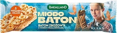 Батончик Bakalland Miodo злаковий з медом та білим шоколадом 25г КЛЕКС