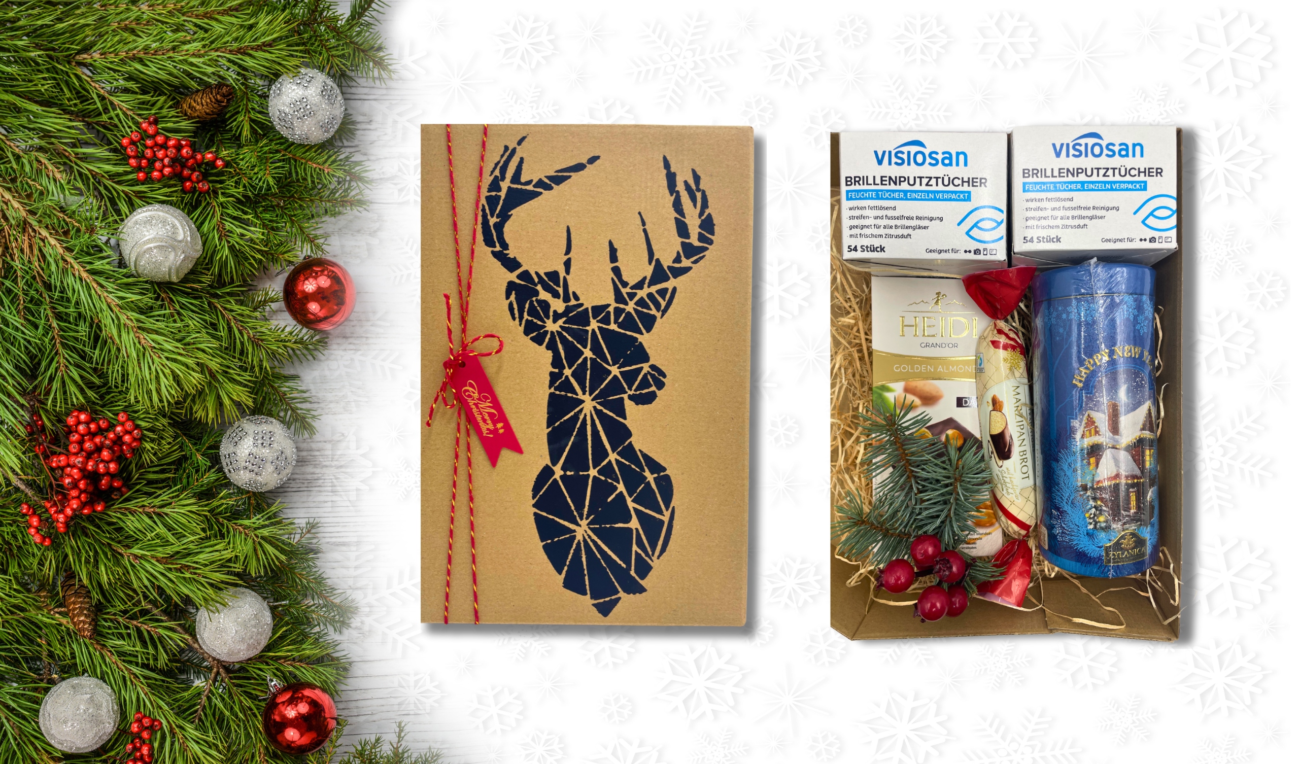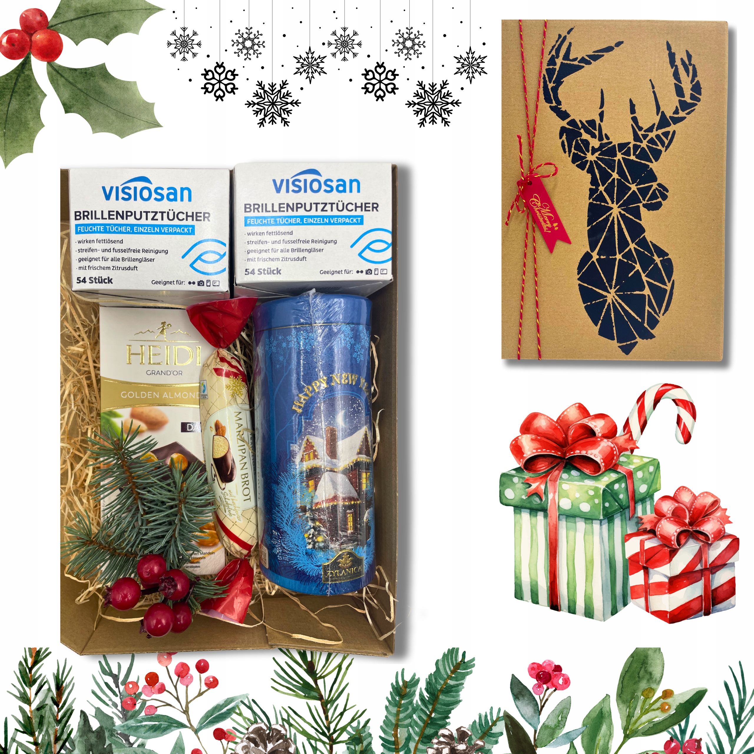 Елегантно упакований у художню упаковку з мотивом оленя, цей набір поєднує в собі смак, якість і стиль трохи розкоші для кожного святкового моменту.