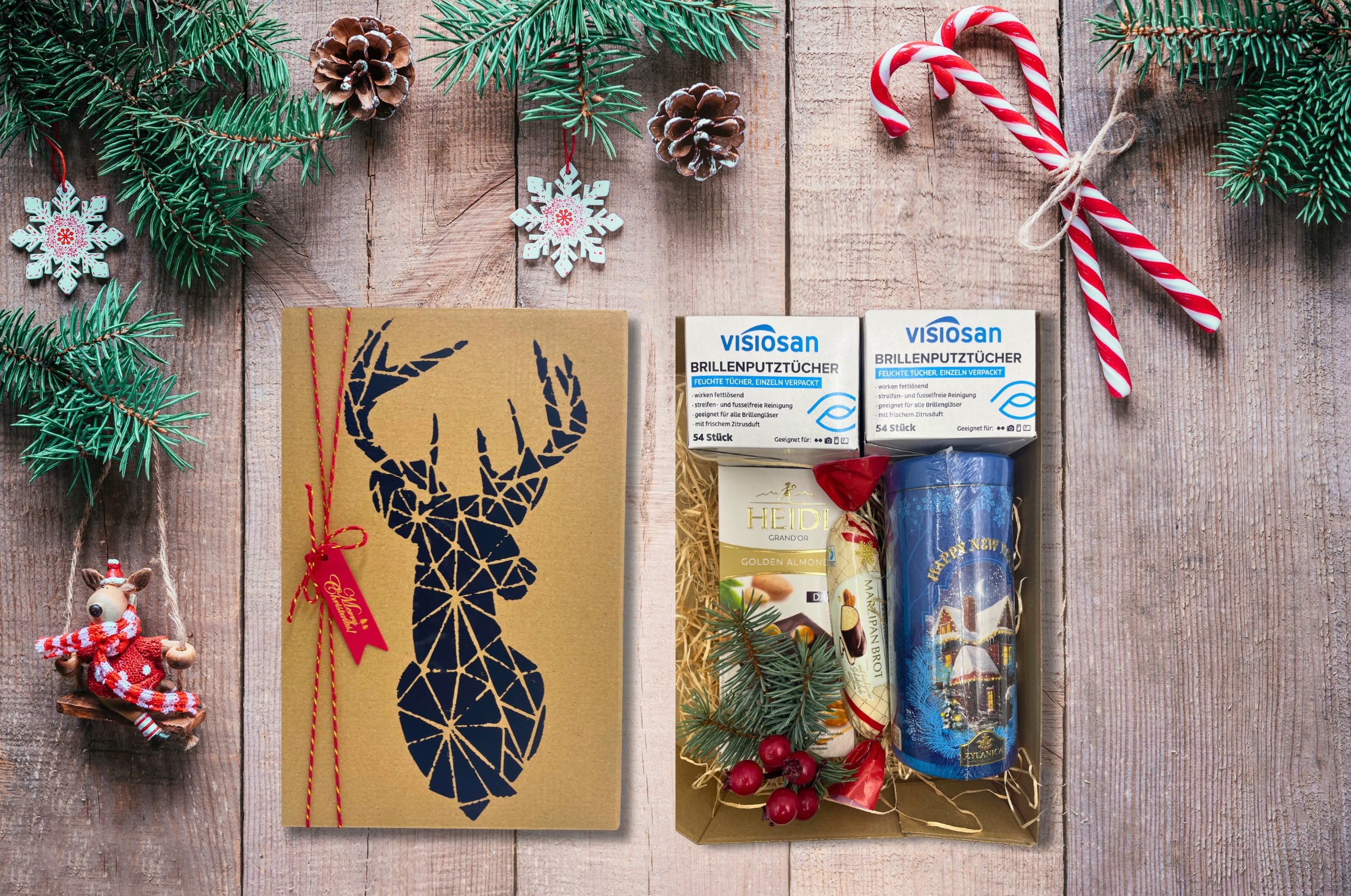 Елегантне пакування: Наш набір упакований у стильну екологічну коробку з геометричним мотивом оленя, який привертає увагу та надає елегантності до кожного подарунка. Кожен пакунок виготовляється вручну нашими ельфами, які дуже дбають про кожну деталь, щоб зробити ваш подарунок унікальним.