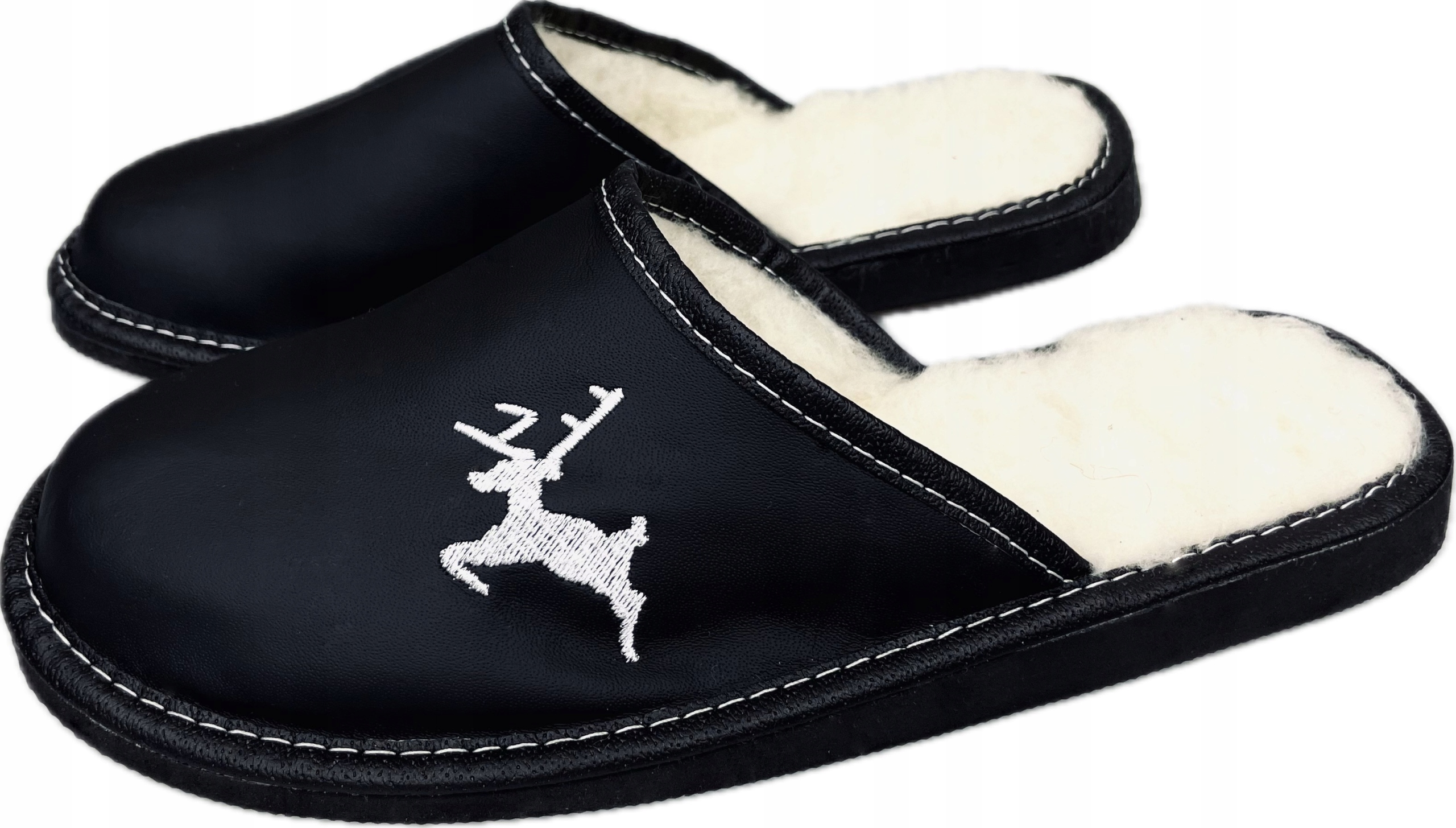 - шкіряні тапочки з різдвяними вишивками оленів