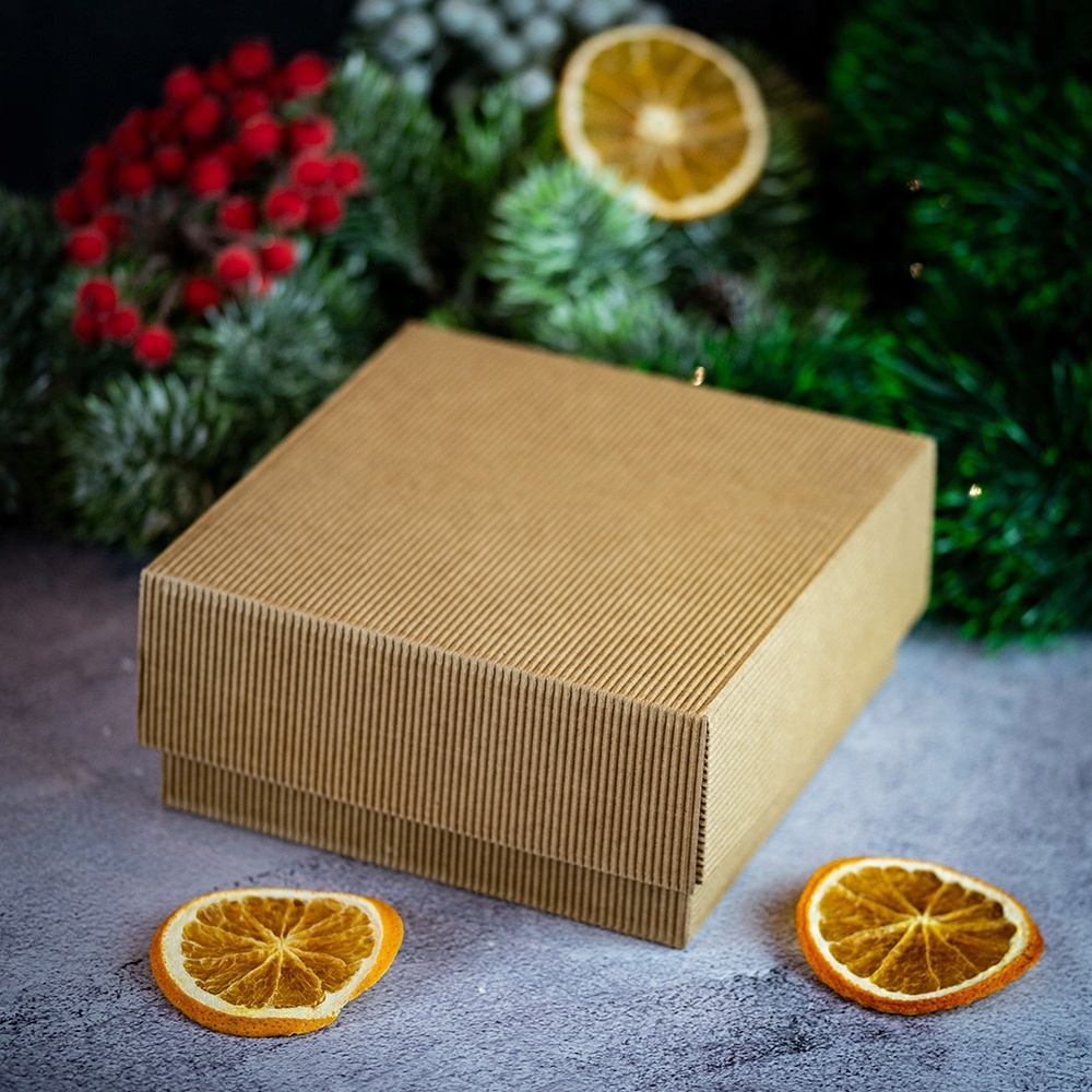 Наші новорічні вироби були акуратно упаковані в красиву декоративну коробку розміром 15х15 см. Це не просто упаковка, це маленький витвір мистецтва.