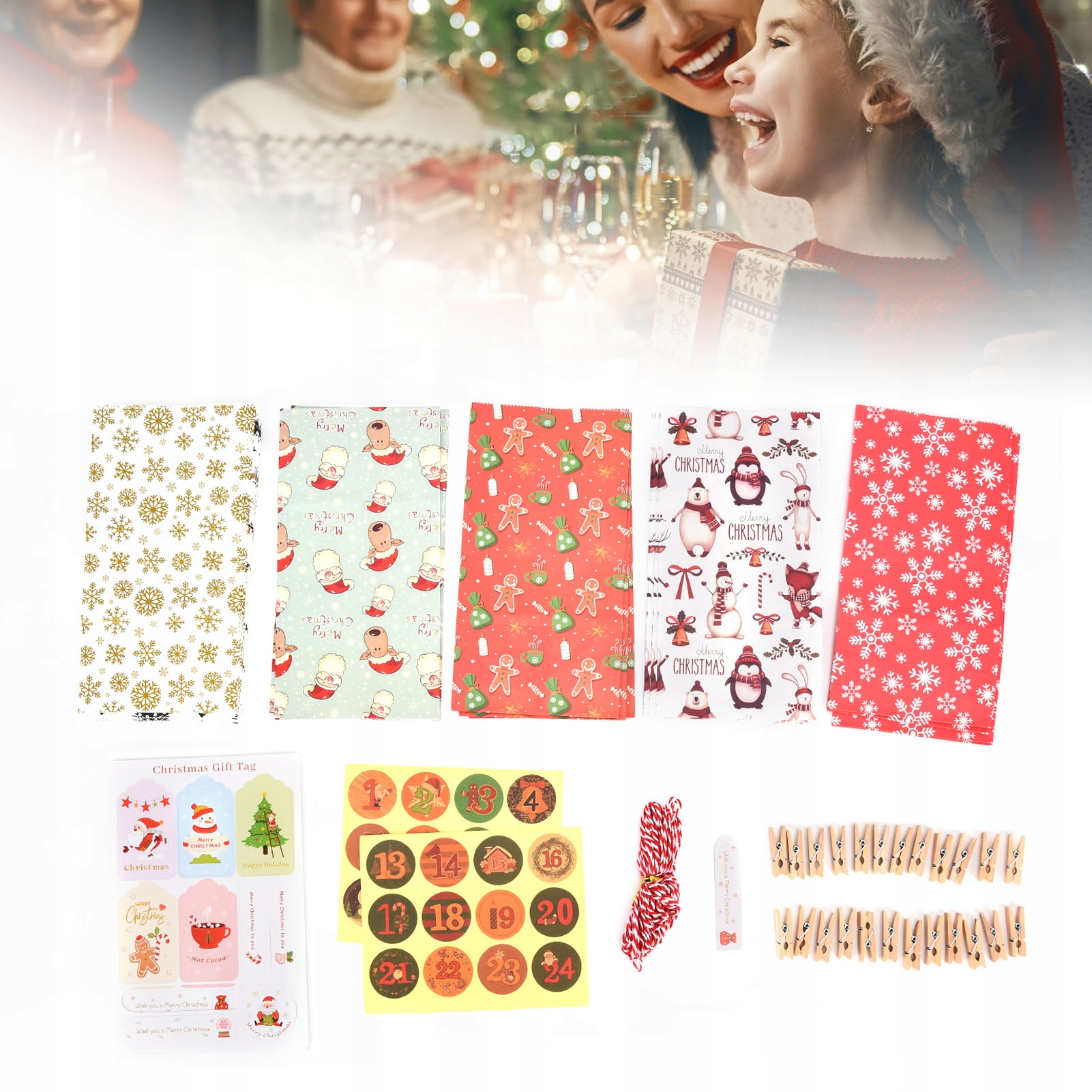 24 шт. різдвяного подарункового пакета з унікальним дизайном різдвяного паперового мішка з цифровими наклейками