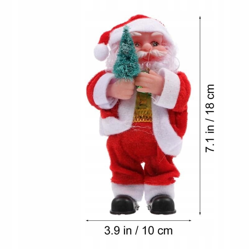 Санта Клаус виготовлений із поліестеру, пластику та металу та живиться від батарейок типу АА (продаються окремо). ).