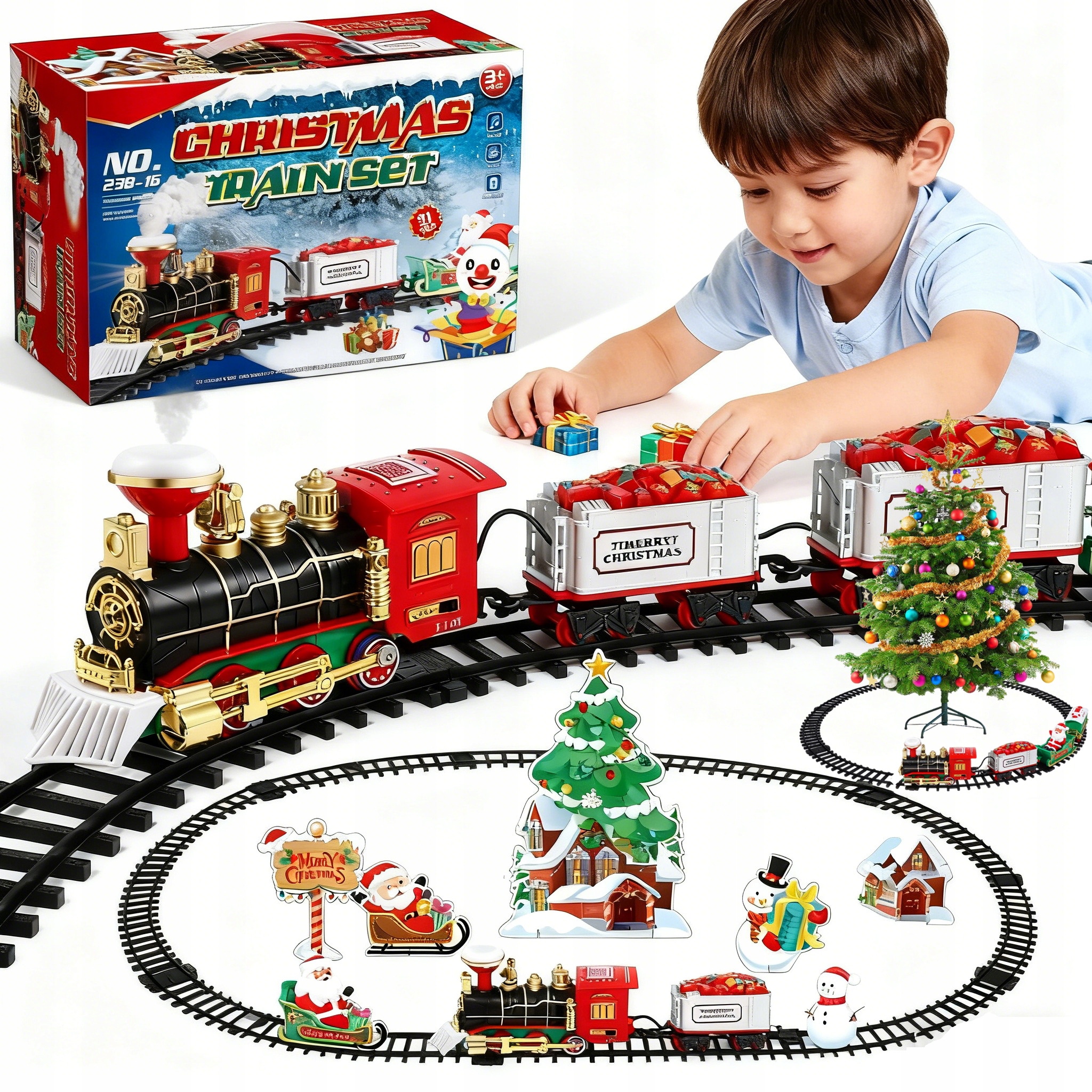 - Зробіть Різдво незабутнім для своїх дітей за допомогою цього різдвяного поїзда. Чарівна форма, реалістичний звук і світло, реалістичний дим паровоза — все це створено для веселої та захоплюючої гри. Ваш малюк годинами розважатиметься, збираючи рейки та спостерігаючи за рухом поїзда. Чудова ідея подарунка для ваших хлопчиків, дівчаток, дітей, щоб насолодитися Різдвом.