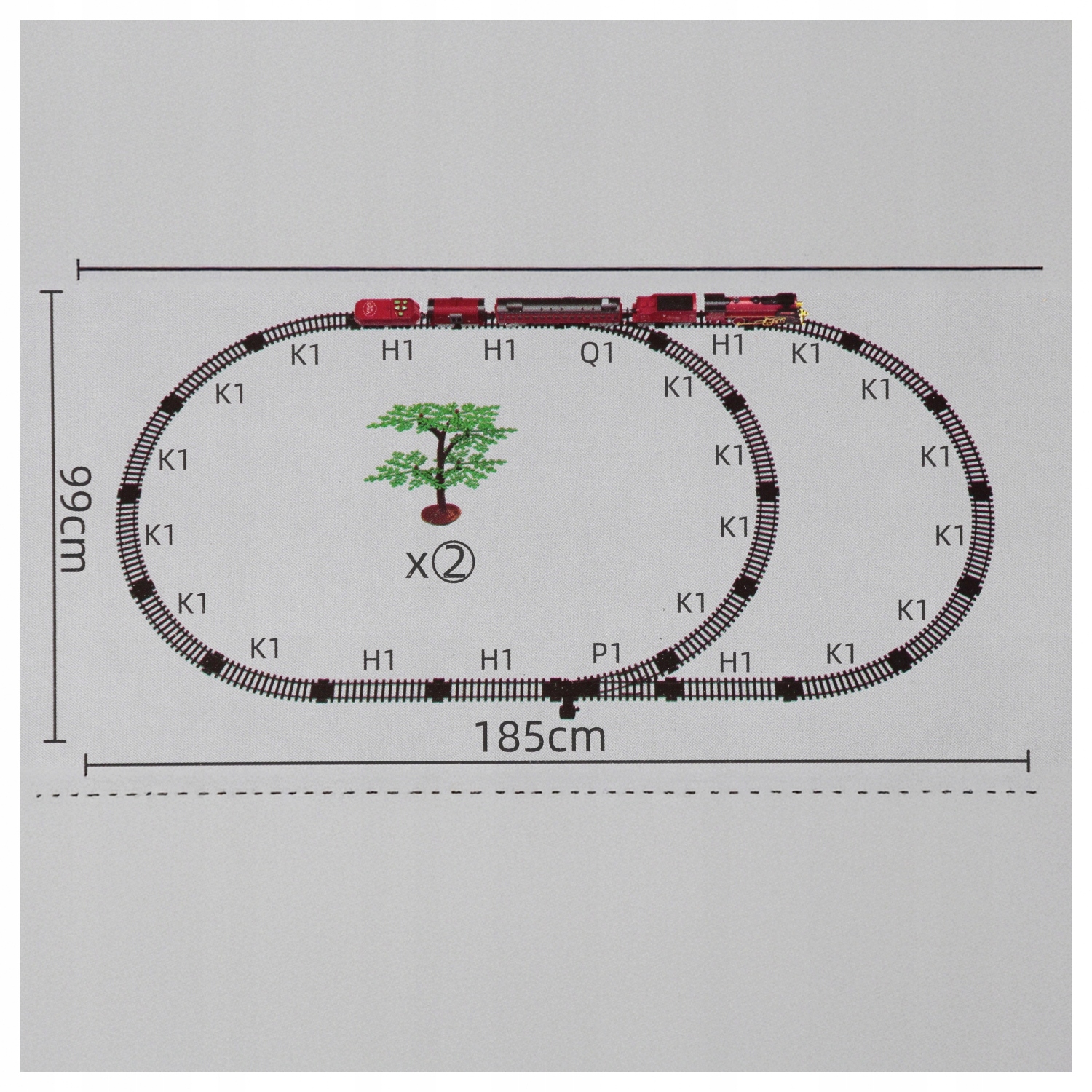 Виріб із пластику. Комплектація: 1x локомотив, 3x вагон, гусениці, 1x пульт дистанційного керування, 1x ємність для води, дорожні аксесуари. Розміри/вага/батареї: розміри упаковки (Д x В x Г) [см]: 65x42x8, вага продукту в упаковці [кг]: 2,05 кг, розміри продукту (Д x В x Ш) [см] - гусениці 185x99, вага продукту (кг) 1,79 кг. Потрібне живлення за допомогою 2 батарейок AALR06 - не входять в комплект, і 1 батареї 3,7 В - входять в комплект. Набір призначений для дітей віком від 3 років.