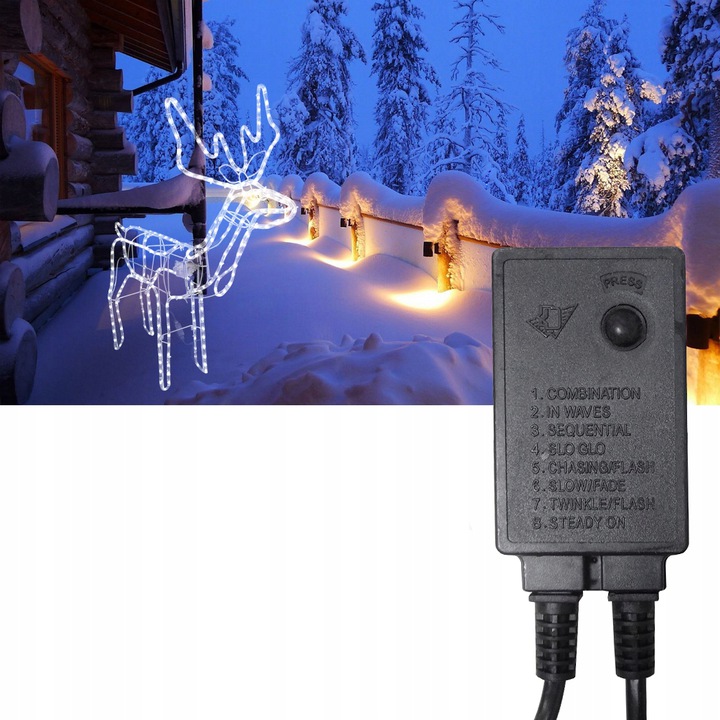 - Окреме живлення для двигуна, що повертає голову оленя, і для світлодіодного ланцюжка