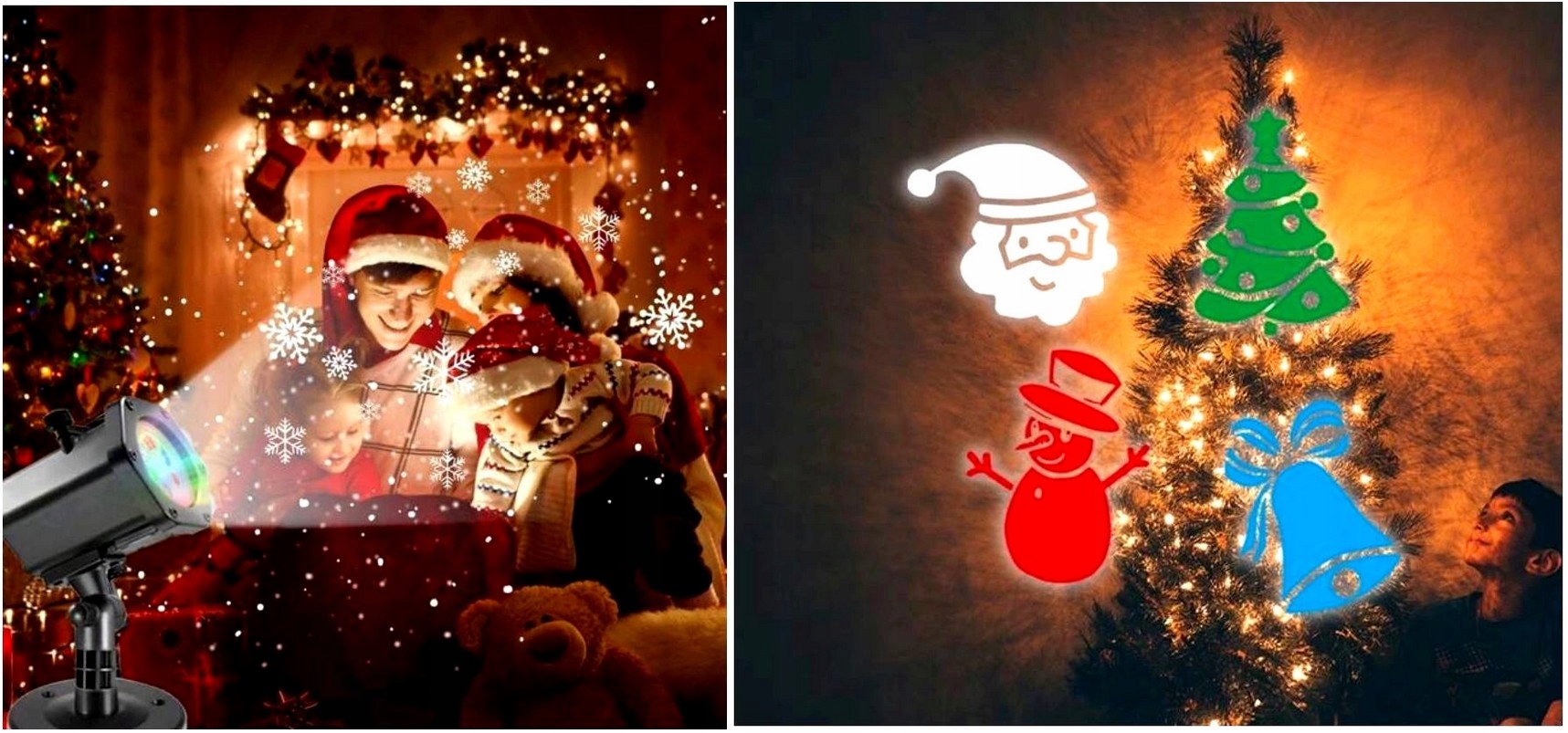 - Проектор замінює традиційне різдвяне освітлення будинку ззовні чи всередині