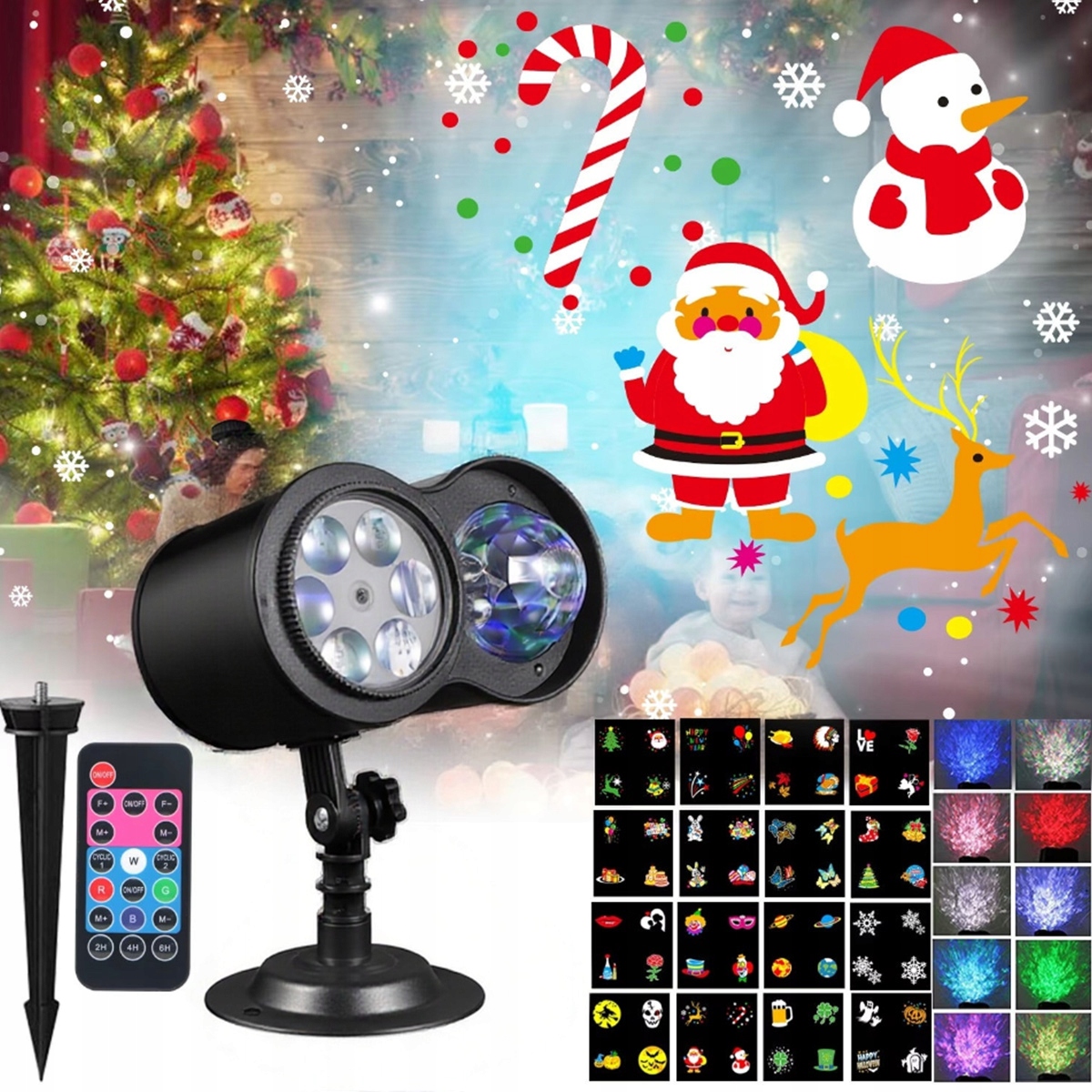 РІЗДВЯНИЙ СВІТЛОДІОДНИЙ ЛАЗЕРНИЙ ПРОЕКТОР 24 МОТИВИ 6 Вт ВОДОЗАХИВЛИЙ ПРОЕКТОР ДЛЯ ДОМА