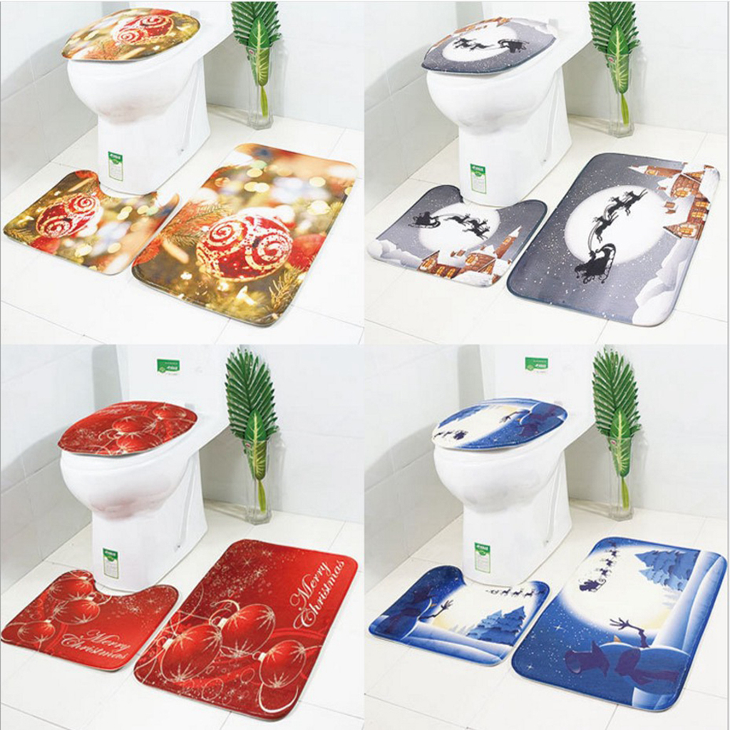 3 шматки Різдвяні стилі, що не є фланелевими обкладинками для туалетної ванної килима, душ м'якого комбінування Padan