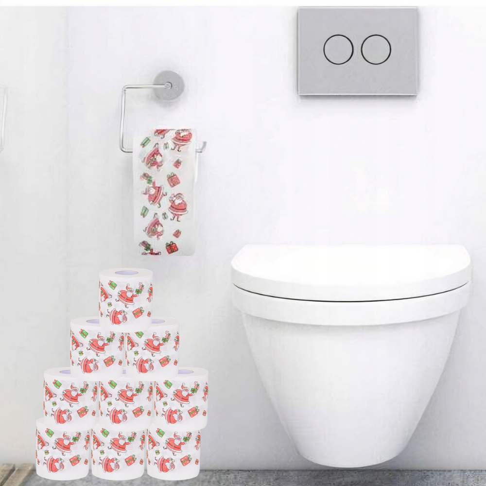 Різдвяний туалетний папір із кумедним візерунком із Дідом Морозом та подарунками – це унікальний гаджет, який принесе нотку гумору та радості у повсякденне різдвяне життя. Рулон прикрашений кольоровим святом мотиви створюють неповторну атмосферу і змушують навіть найпростіші дії зайнятися святковий характер. Це чудова ідея для подарунку, смішного подарунка чи доповнення до різдвяної упаковки.