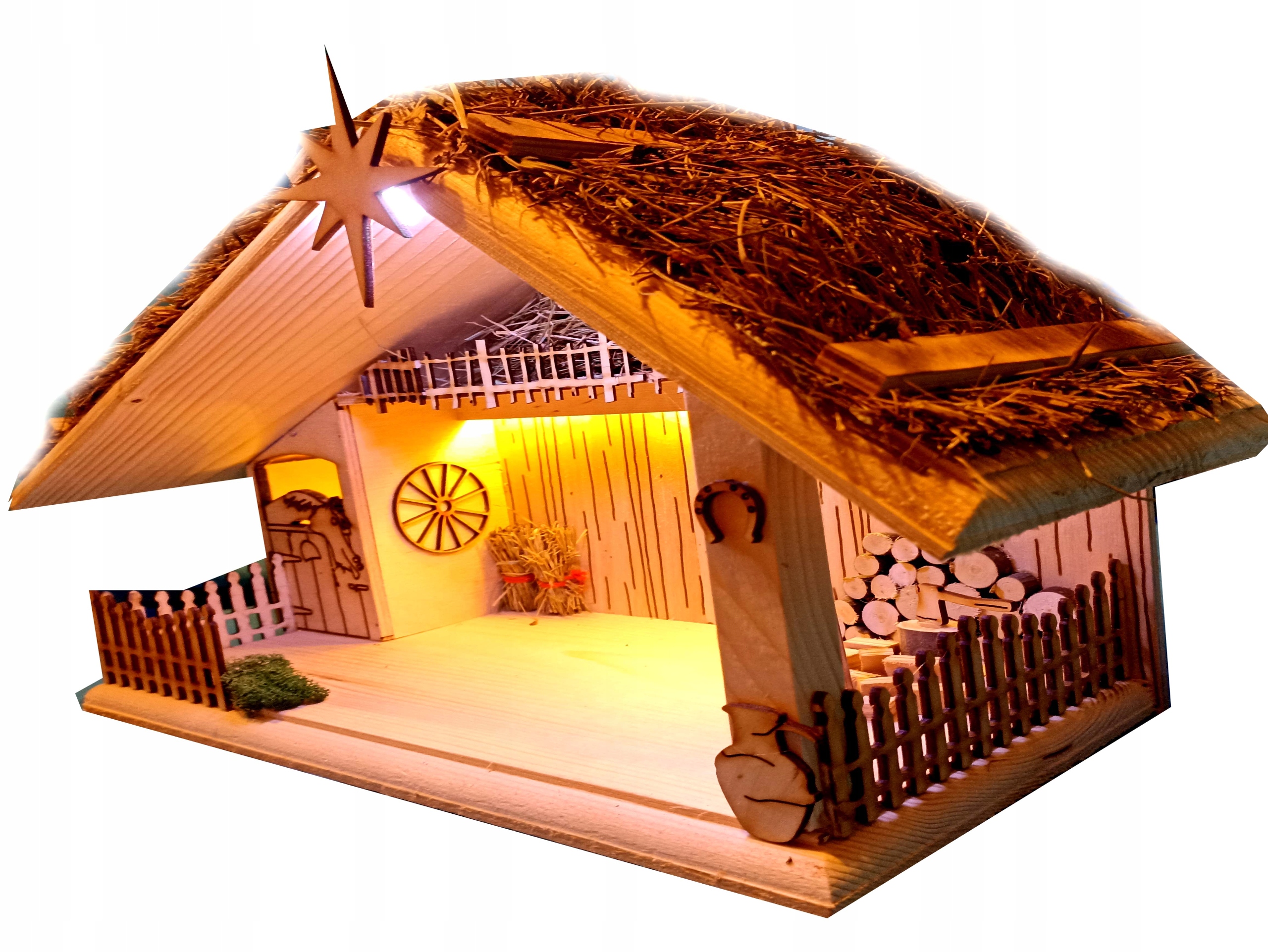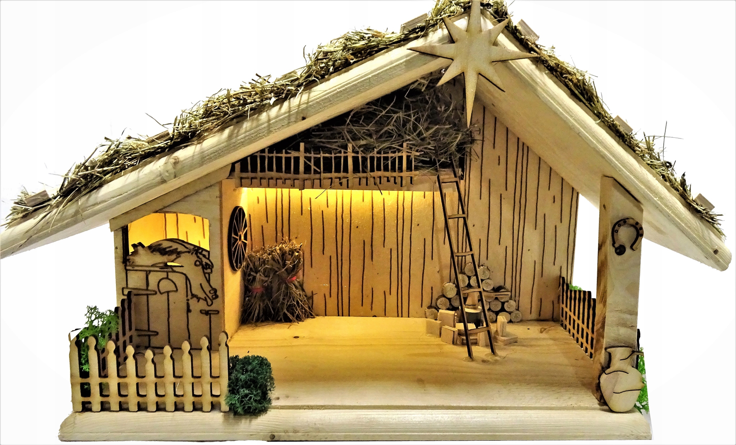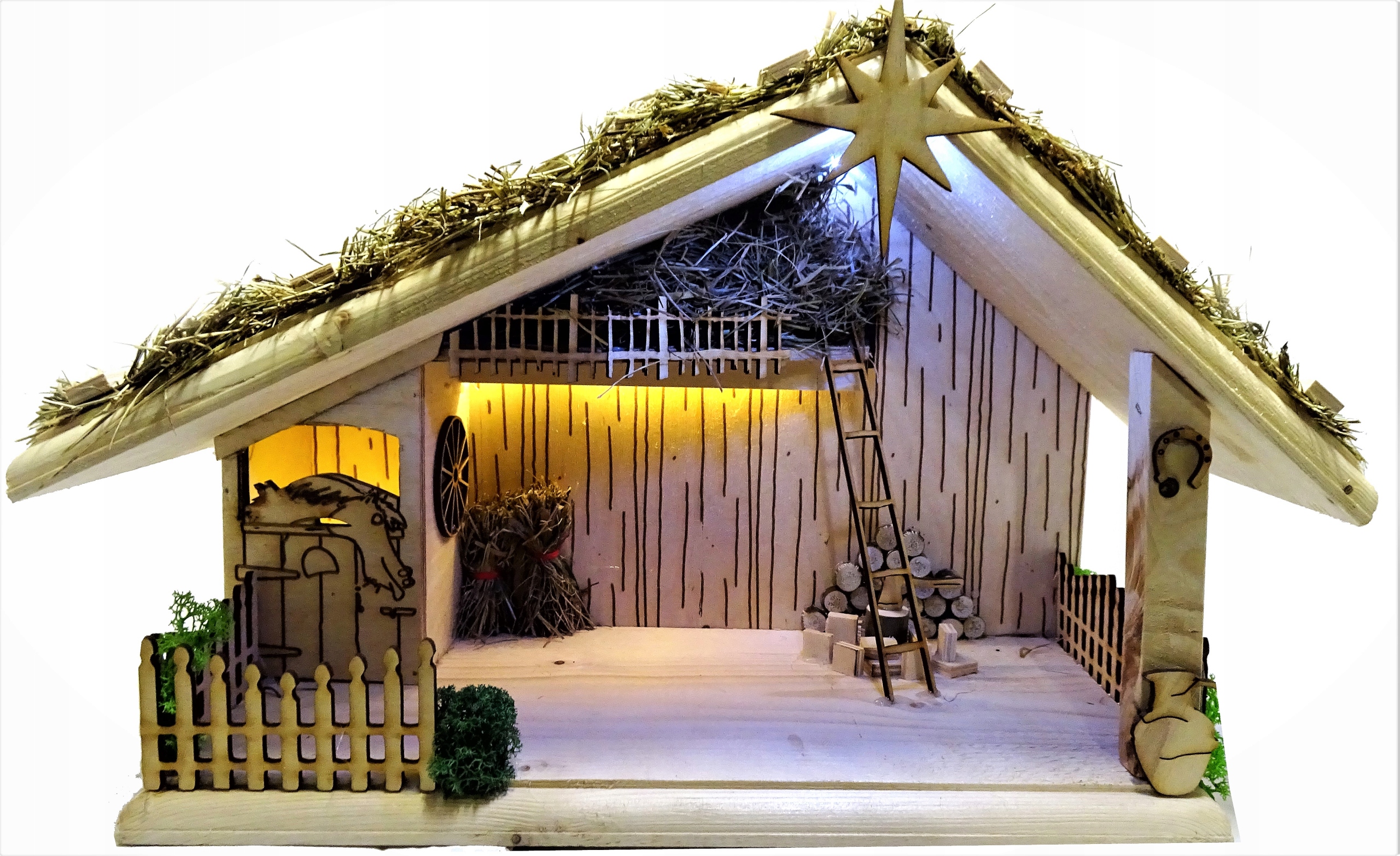 У вертеп входять два світлодіодні світильники, які живляться від 4 батарейок (жирова паличка).
