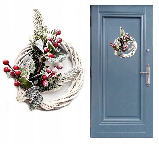 Віночок із пофарбованої білої лози та красивих засніжених гілок із червоними фруктами ідеально підходить як різдвяна прикраса.< /h2> Ефект ніжного морозу дарує зимову атмосферу.