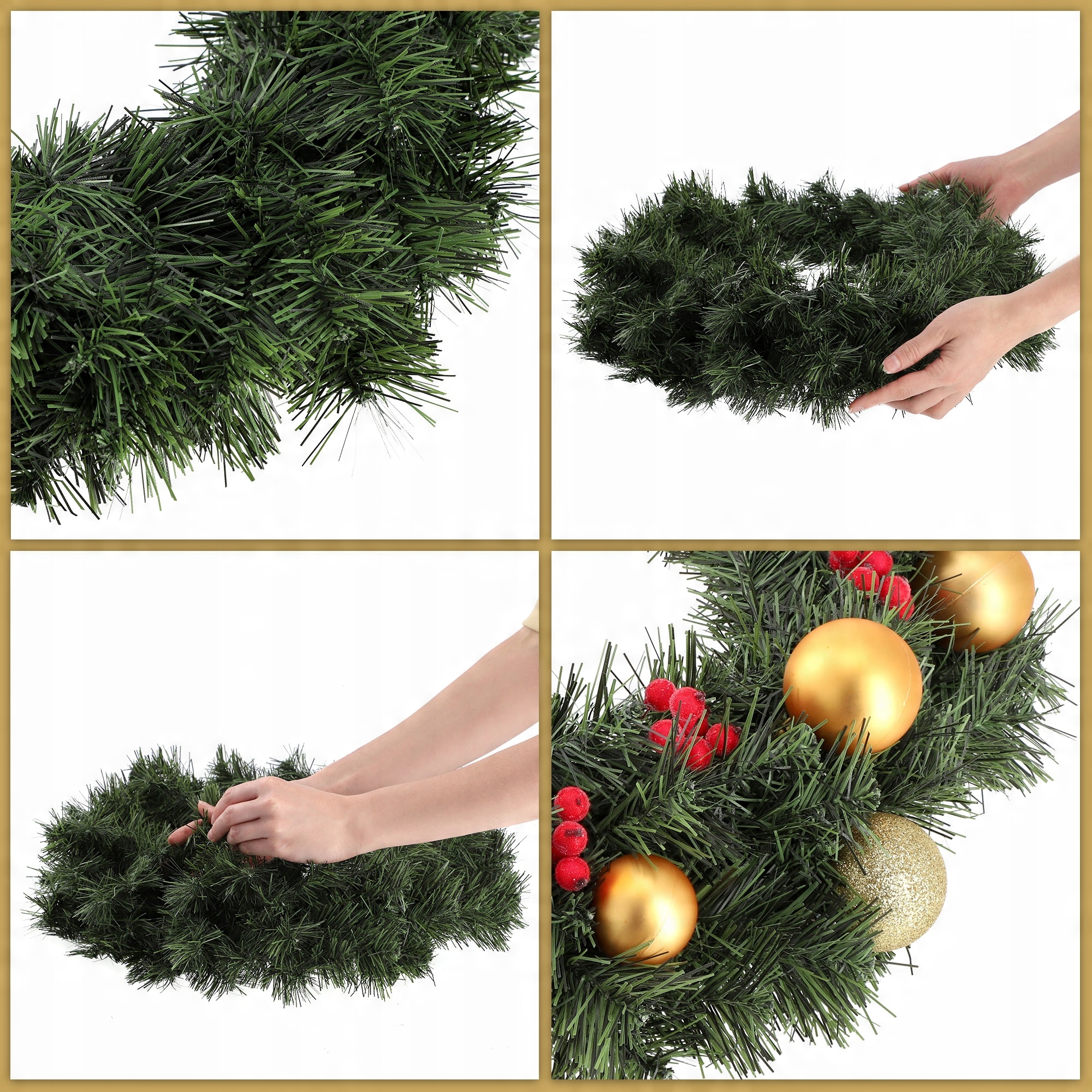 ⭐DURABLE – різдвяний віночок виготовлений з високоякісного ПВХ матеріалу, що не тільки впливає на його довговічність. Це матеріал, який не втрачає колір і не змінює структуру. Різдвяний вінок прослужить вам багато років, як всередині, так і зовні.