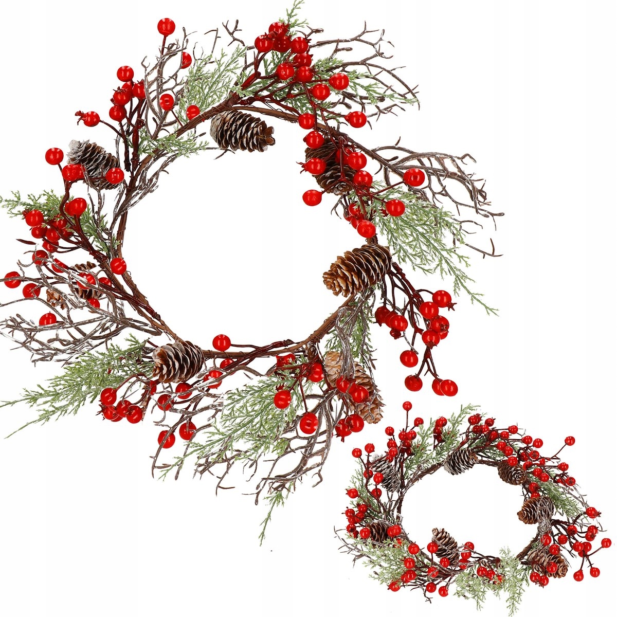 - Декоровано: ягодами горобини, шишками, гілочками