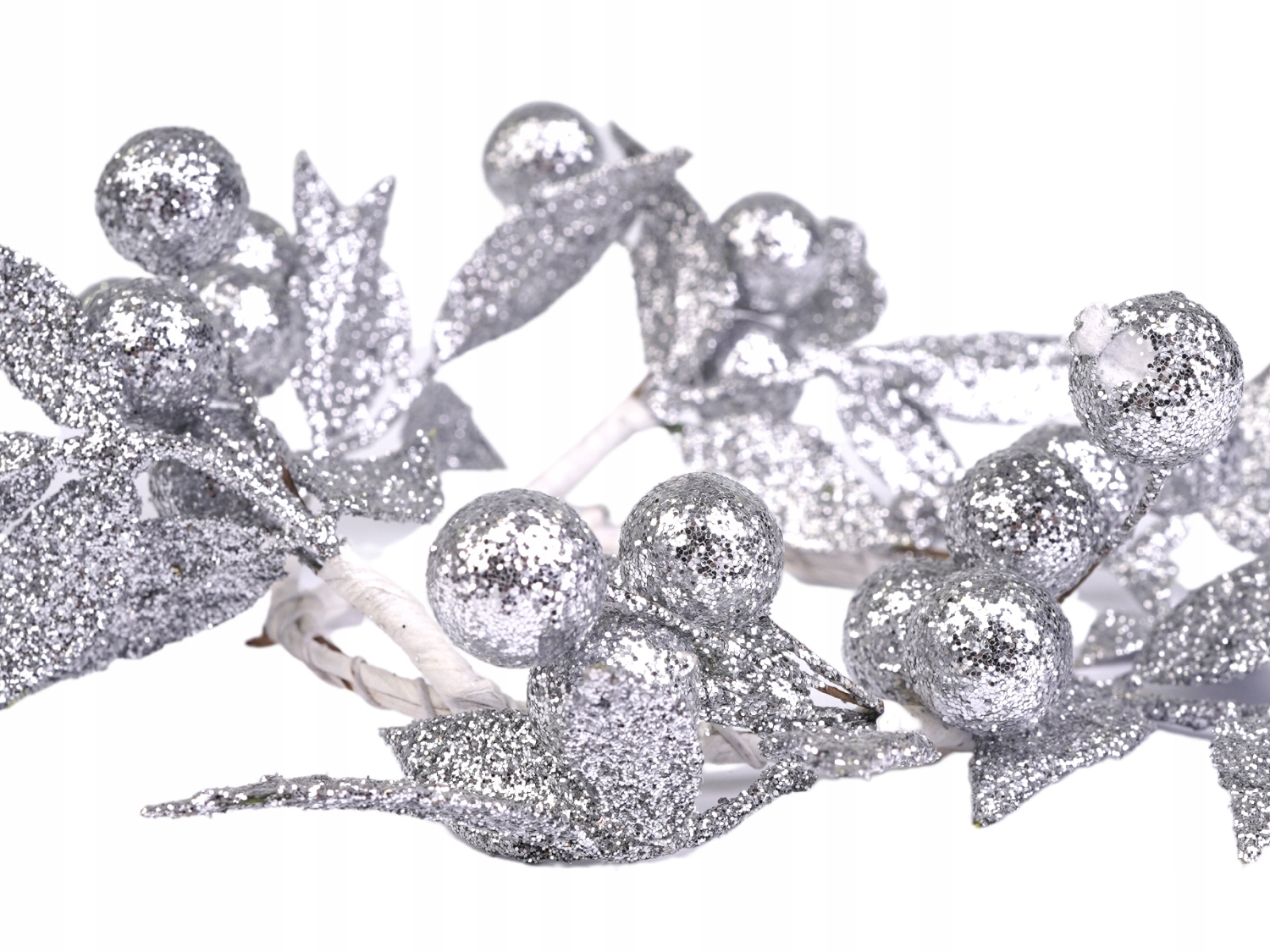- Різдвяний вінок із сріблястими блискітками та кульками,