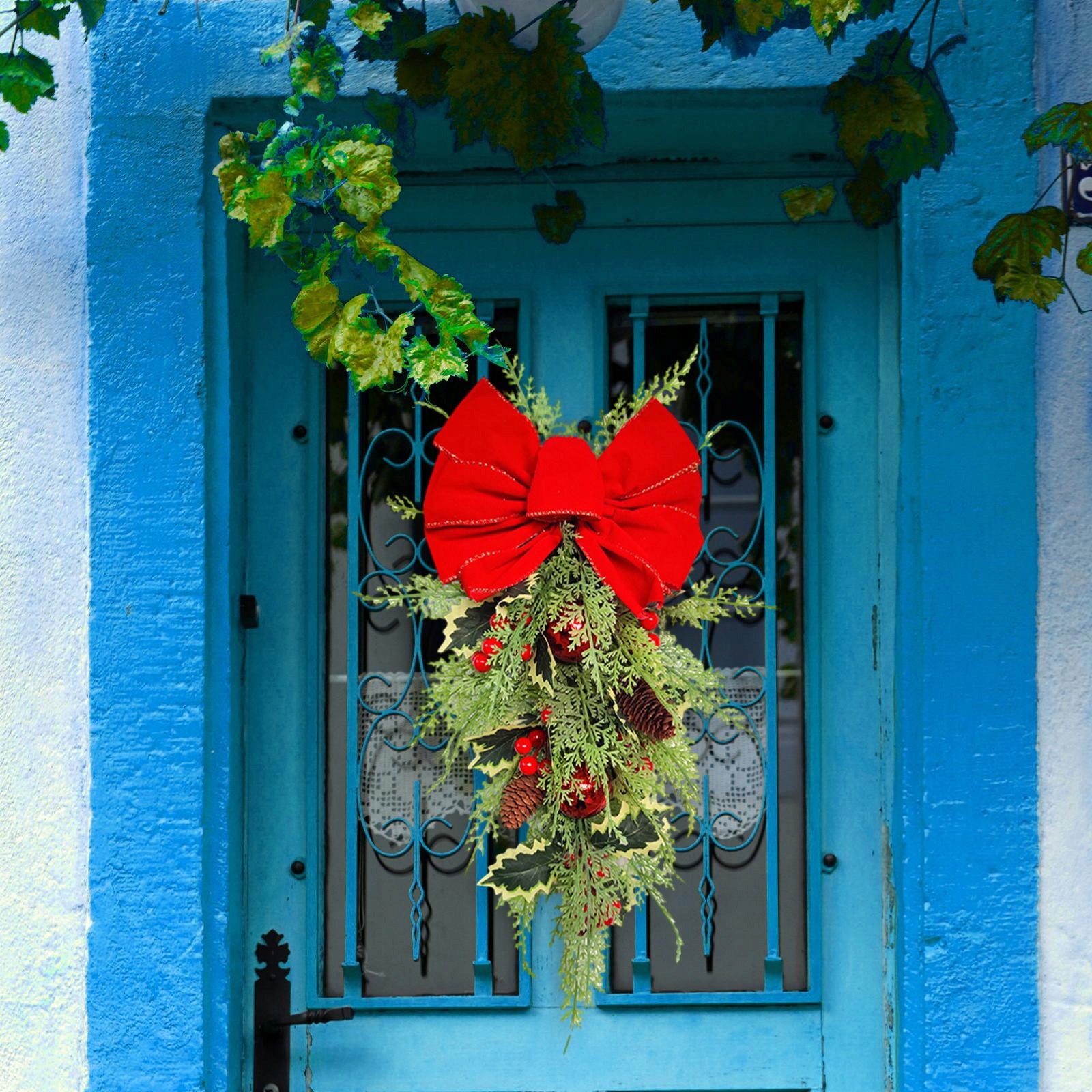 [Вінок для передніх дверей]: додайте святковий штрих у свій дім, і привабливий святковий вінок привабить ваших гостей.